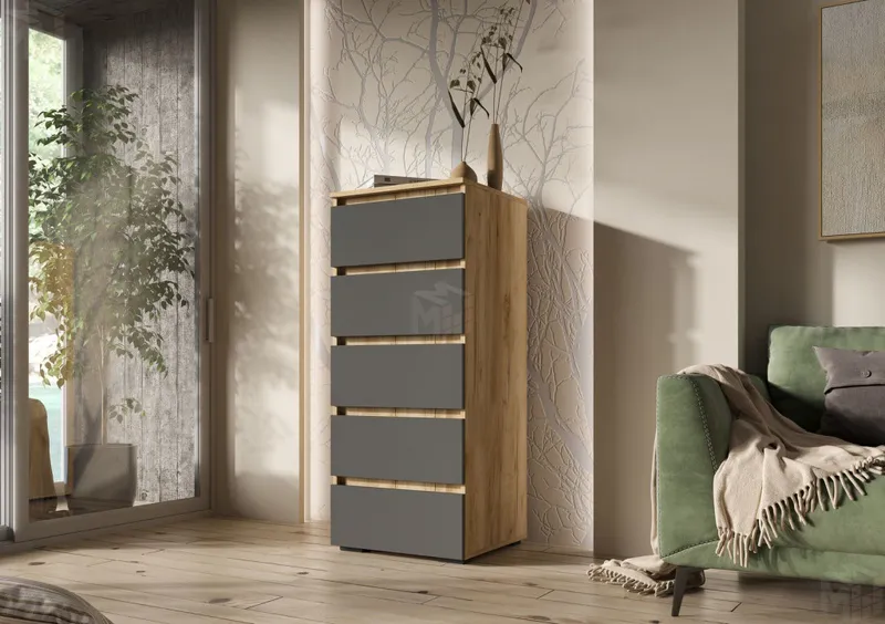 Комод Хелен КМ 03 502 5 ящиков дуб крафт золото - серый графит
