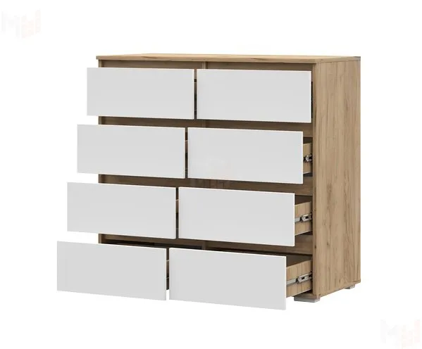 Комод Хелен КМ 04 8 ящиков дуб крафт золото - белый
