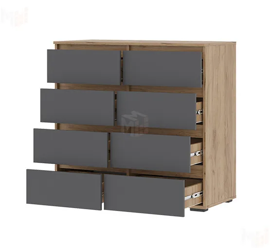 Комод Хелен КМ 04 8 ящиков дуб крафт золото - серый графит