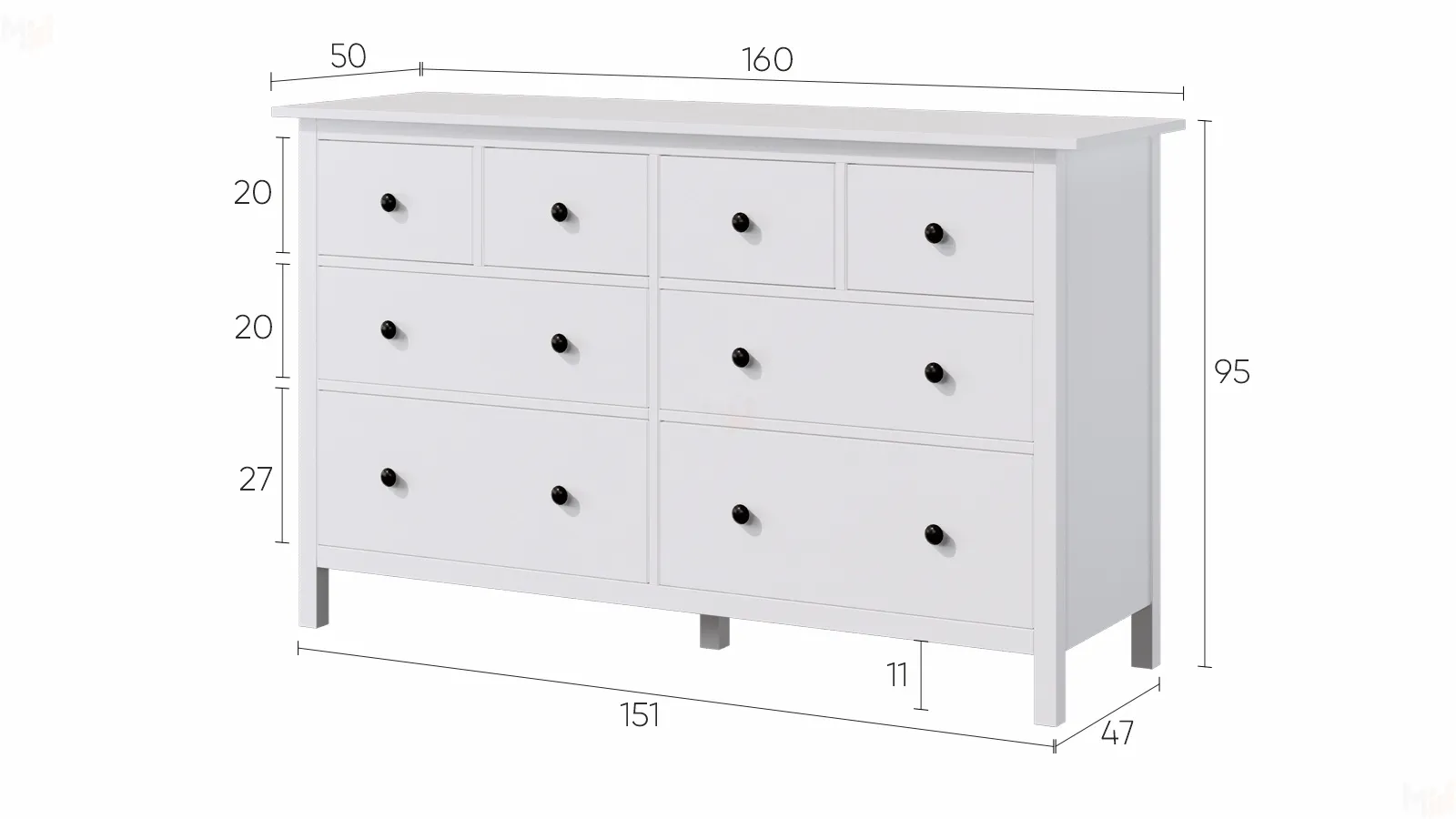 Комод КЫМОР 8 ящиков белый