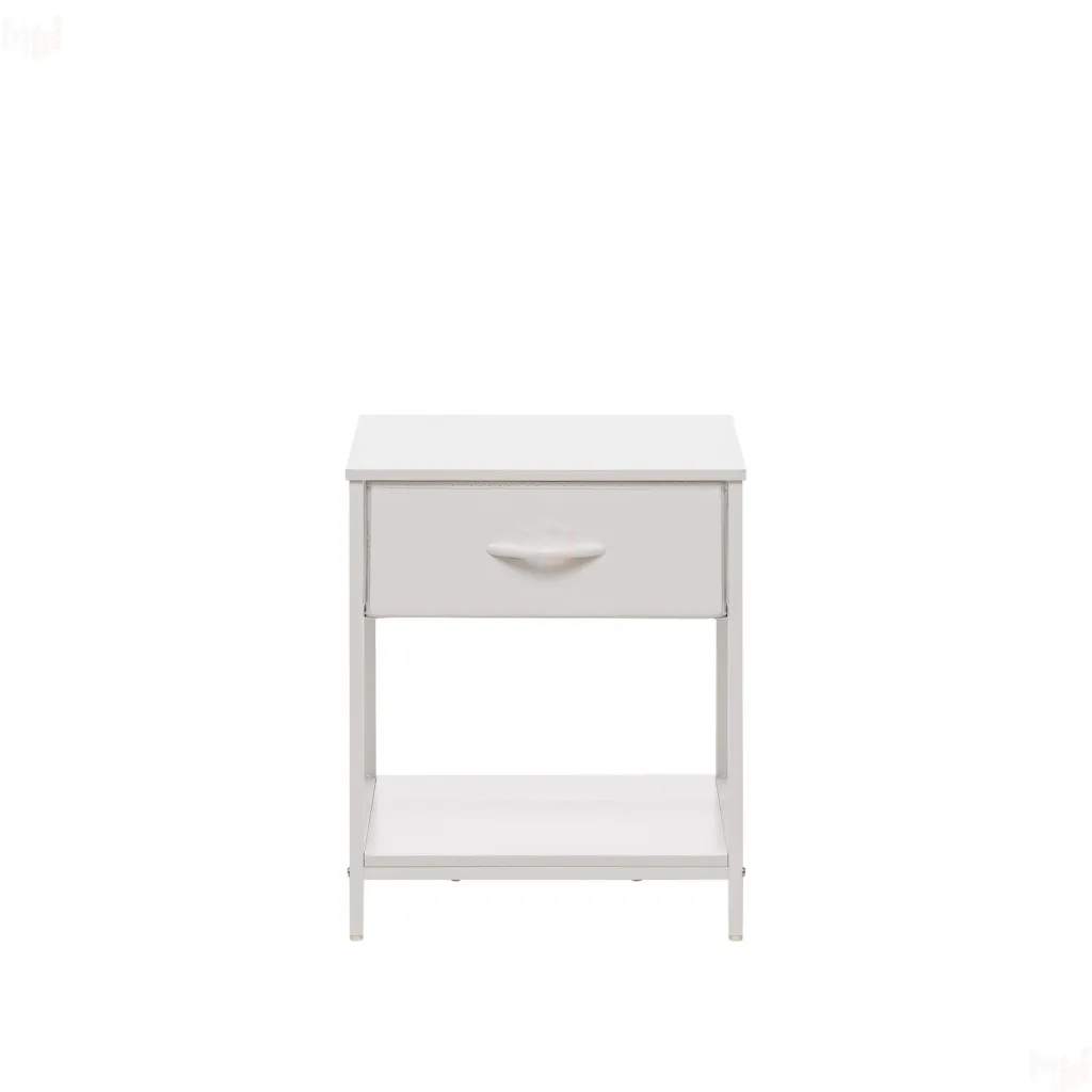 Тумбочка имеет один вместительный выдвижной ящик и открытую полку для мелочей. Стильная тумба получила стальной каркас и надежные пластиковые ножки, которые сберегут пол. Ящик – экокожа с деревянной ручкой и нетканый материал – спанбонд.