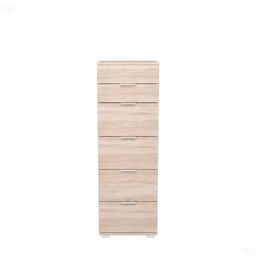 Комод Наоми-6 оснащен пятью выдвижными ящиками и отсеком с откидной крышкой с амортизатором для фиксации, откидная крышка комода оснащена зеркалом. Комод очень удобен, так как не занимает много места и совмещает в себе функции комода и трюмо.