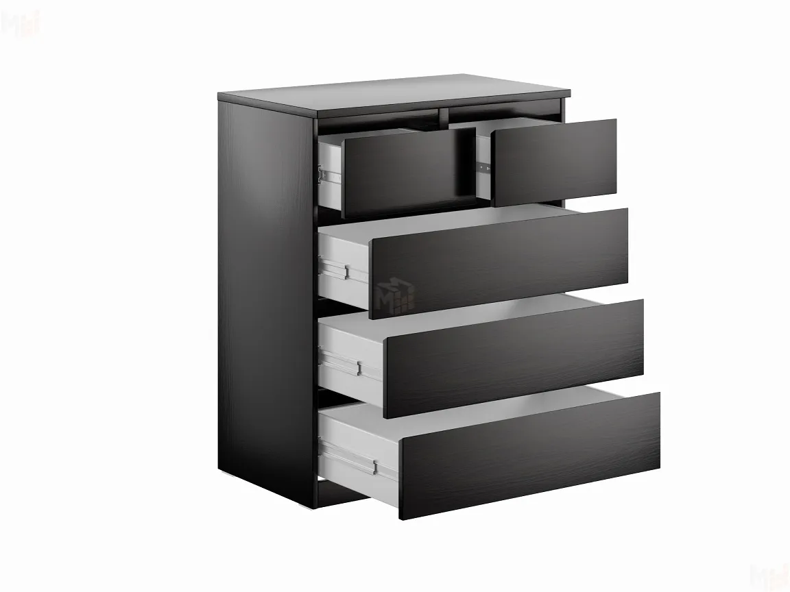 Комод Мальта 5 ящиков - это идеальный выбор для тех, кто ищет функциональную и стильную мебель. Этот комод выполнен в минималистичном стиле и имеет 6 вместительных ящиков, что делает его идеальным выбором для хранения одежды, обуви, книг и других вещей. Он также легко впишется в любой современный или классический интерьер благодаря своему универсальному темному цвету.