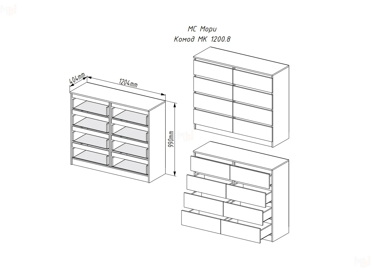 ширина 1204 мм, глубина 404 мм, высота 990 мм