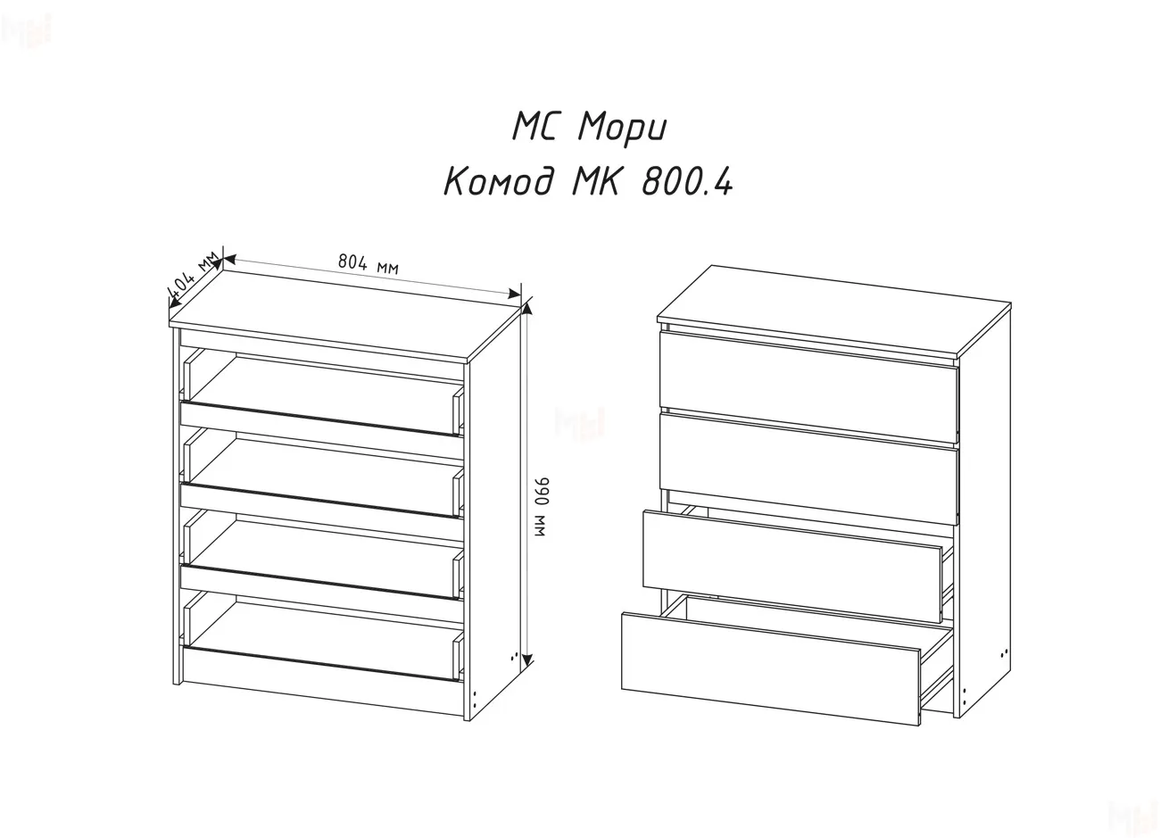ширина 804 мм, глубина 404 мм, высота 990 мм