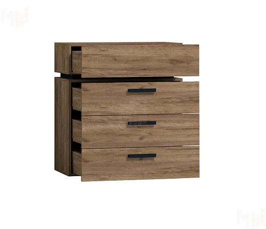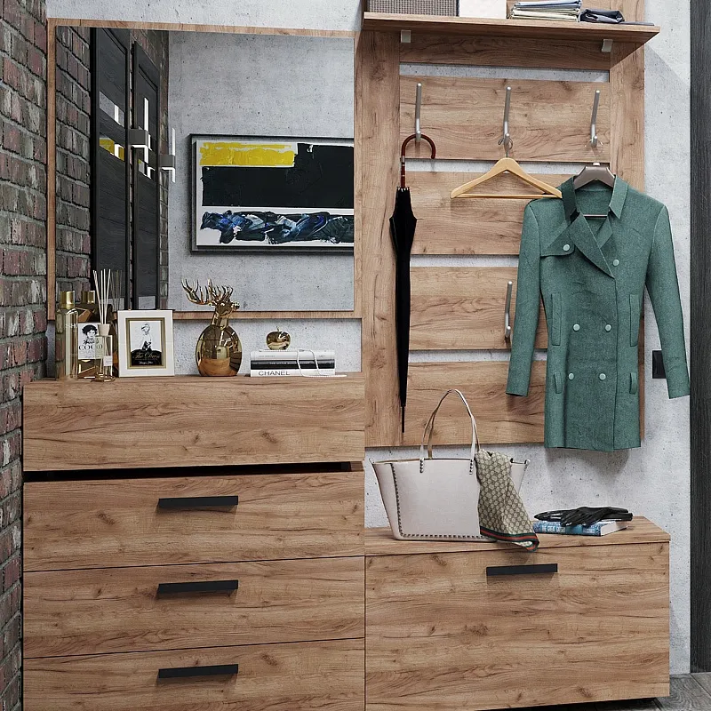 Широкий комод в прихожей увеличит место для хранения вещей, позволив рассортировать их по ящикам. Четыре выдвижных ящика оснащены шариковыми направляющими. Верхний ящик открывается за свес.