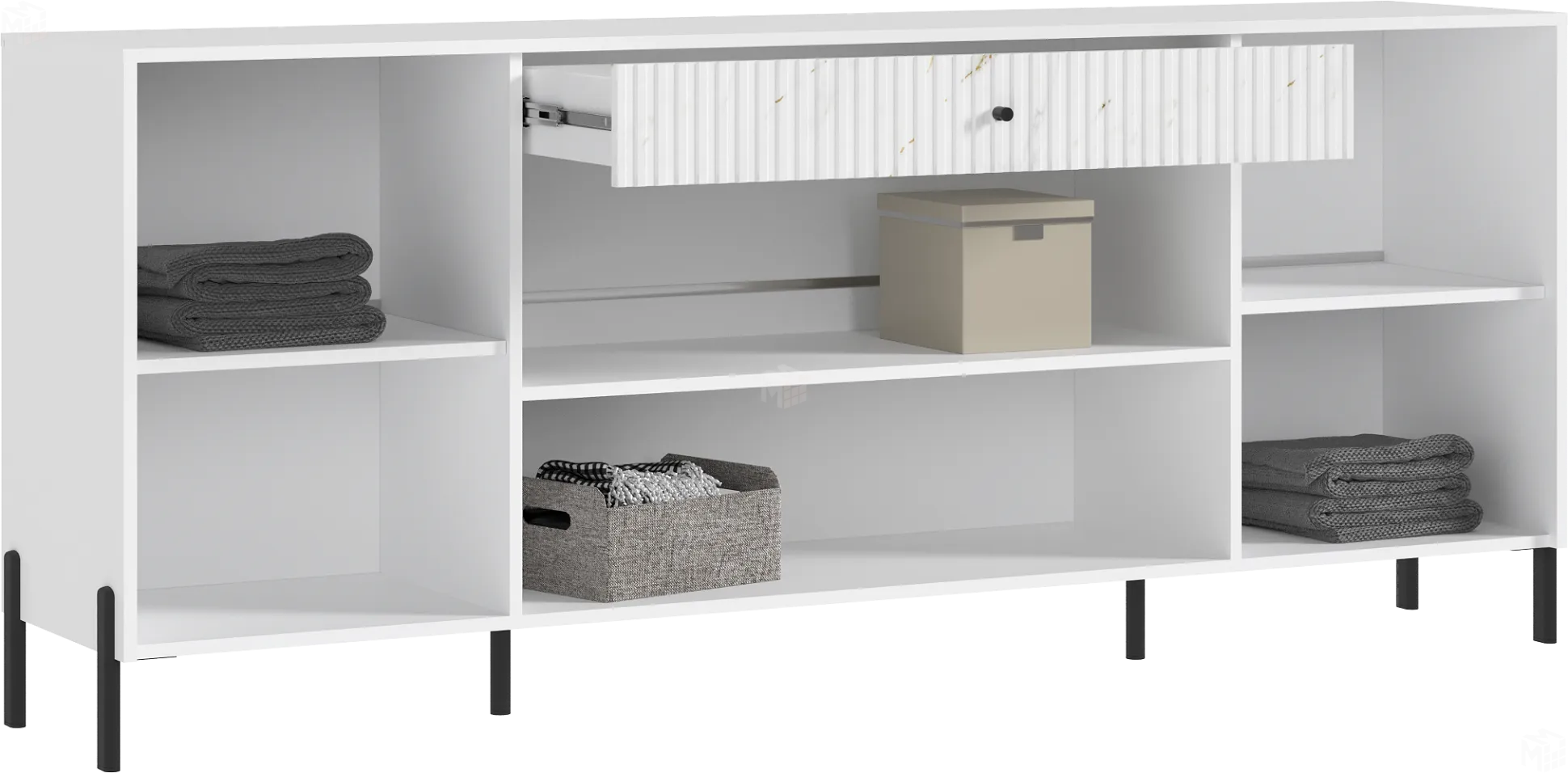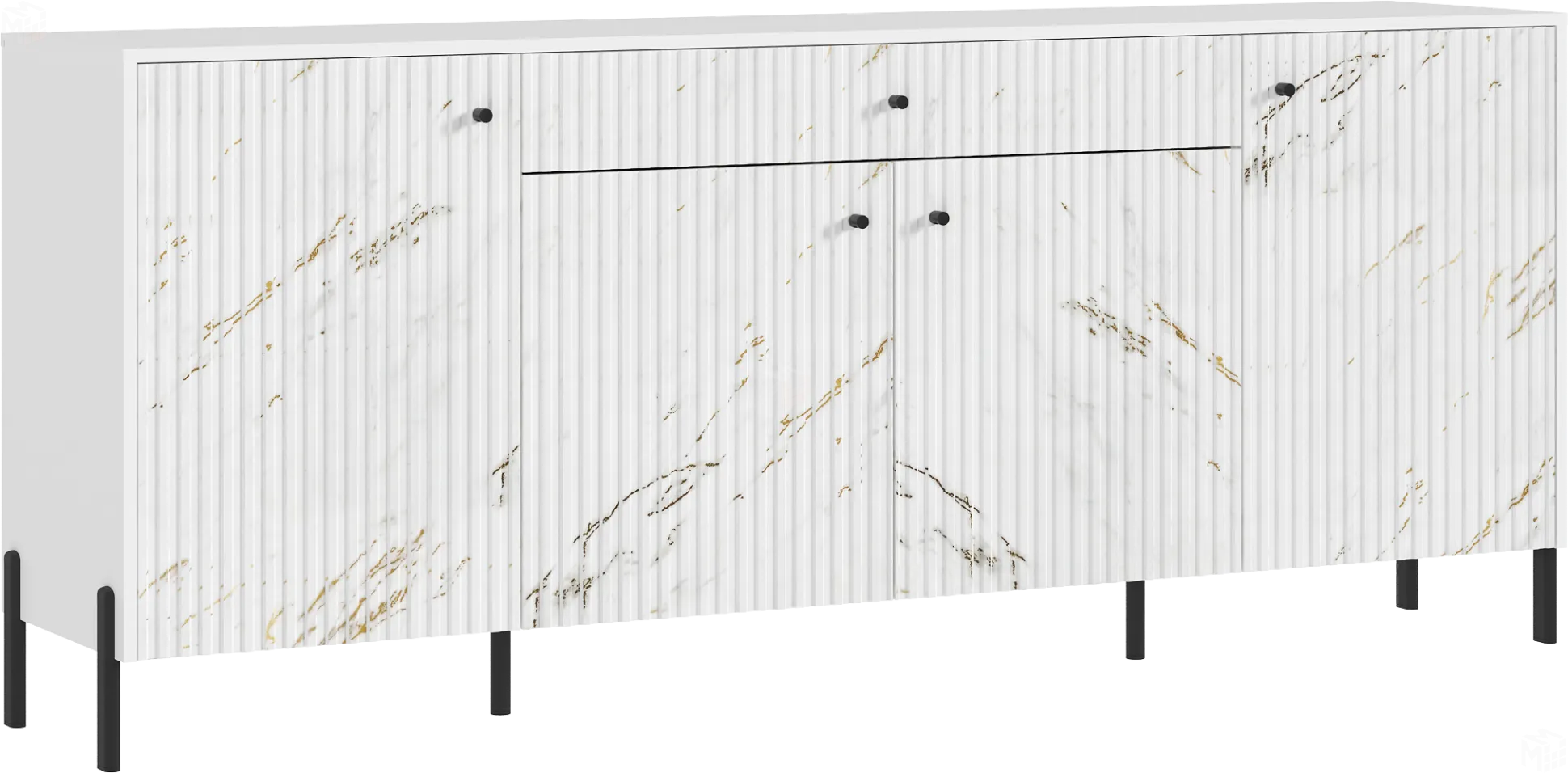 Комод выполнен из ЛДСП белого цвета, фасады МДФ Мрамор золото.