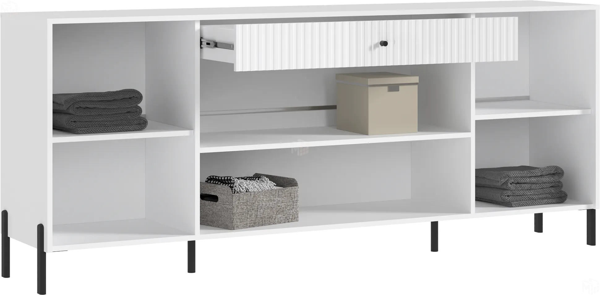 Комод выполнен из ЛДСП белый, фасады МДФ Белый глянец или Белый матовый.