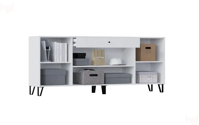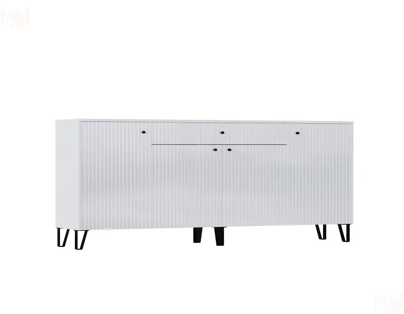 Комод выполнен из ЛДСП белый, фасады МДФ Белый глянец.