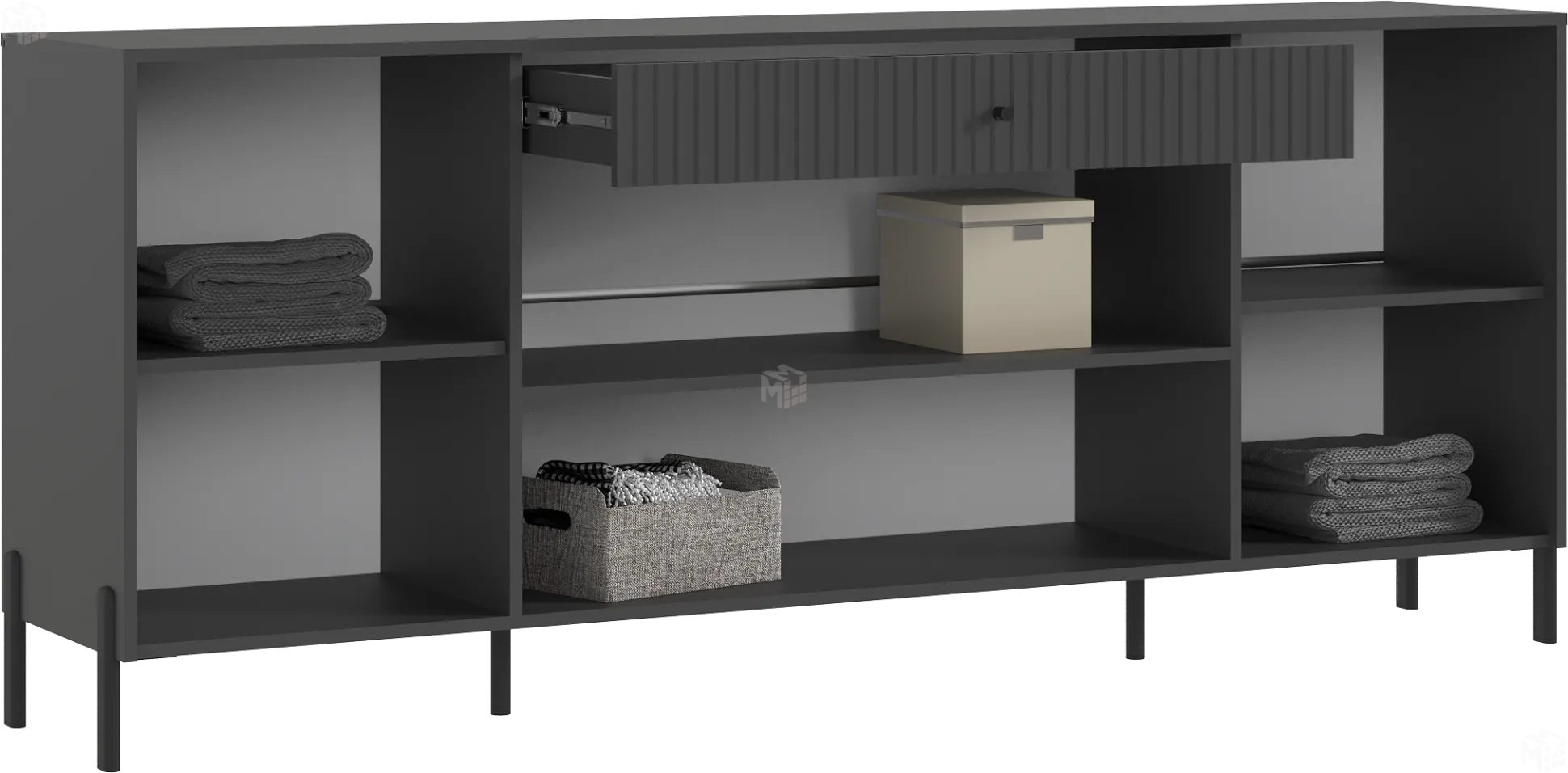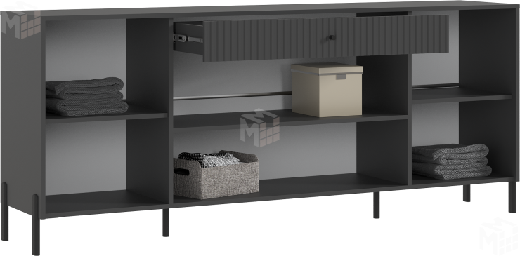 Комод выполнен из ЛДСП графит, фасады МДФ Графит софт.
