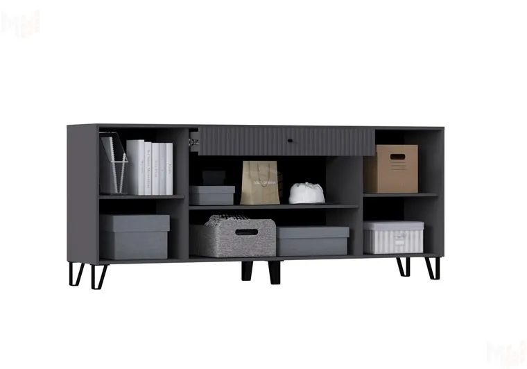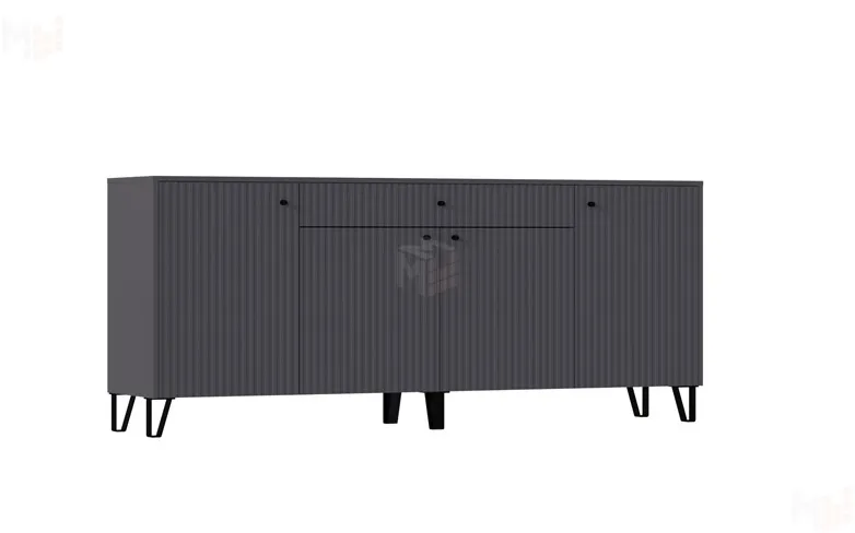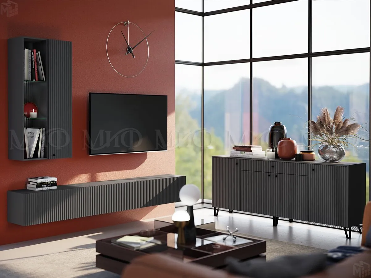 Комод выполнен из ЛДСП графит, фасады МДФ Графит софт или глянец.