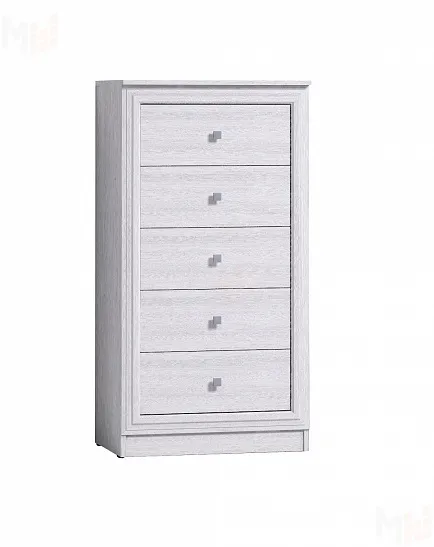 Используйте высокий и узкий комод в спальне как тумбу под телевизор или туалетный столик. Целых пять выдвижных ящиков глубиной 30 см, высотой 14 см и шириной 47 см каждый обеспечат большую зону для хранения одежды и белья. Они оснащены шариковыми направляющими полного выдвижения, благодаря чему вся полезная площадь ящика расходуется рационально, а установить их легко даже для новичка.