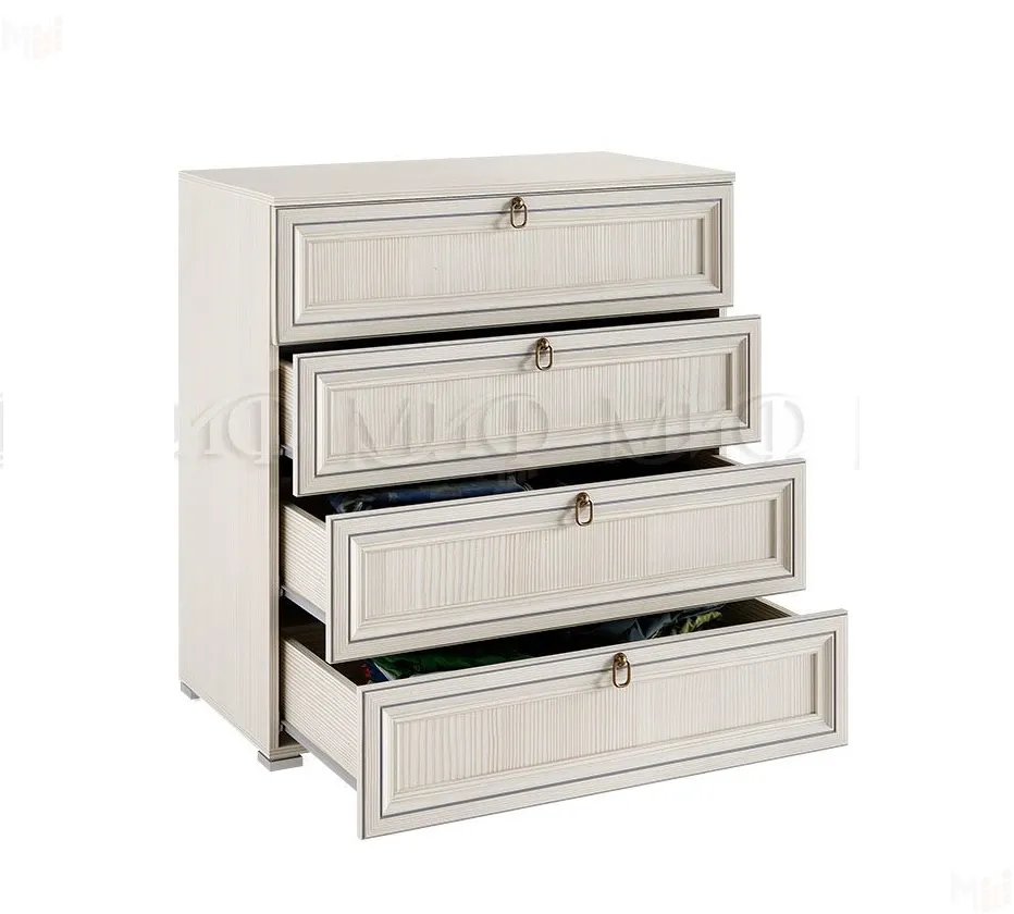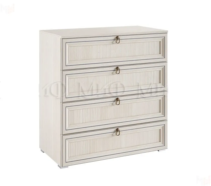 Каркас комода выполнен из ЛДСП Сандал, фасады МДФ Сандал со штапиком с патиной серебро. -