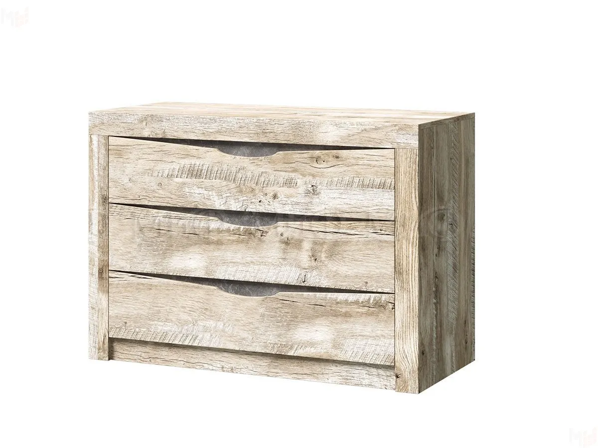 Комод выполнен из ЛДСП Дуб Юкон, вставки Бетон темный.