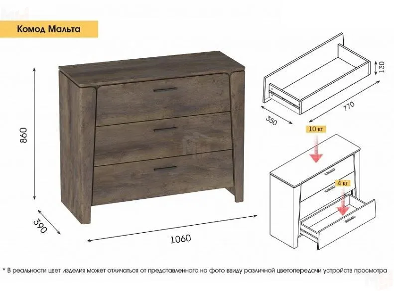 Максимальная нагрузка на выдвижной ящик: 4 кг.