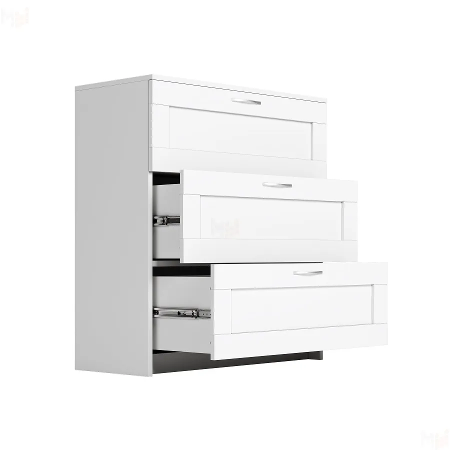 Комод выполнен из ЛДСП белого цвета 16 мм. Фасады в рамке МДФ.