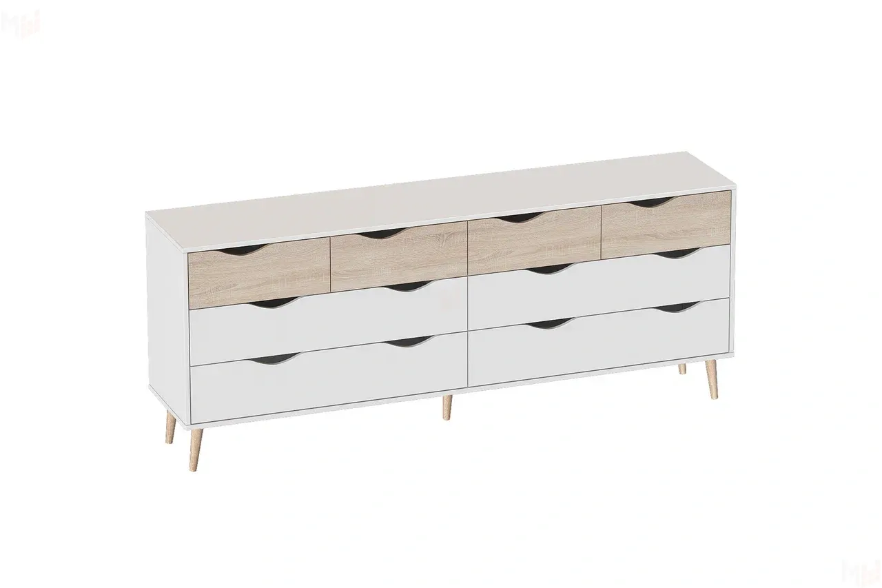 Серия Соната отличается простотой и натуральностью, выполнена в естественных тонах. В дизайне отчетливо улавливаются отсылки к скандинавской эстетике: чистые линии корпуса, использование белого цвета в отделке фасадов, расставленные в стороны высокие стильные опоры, выполненные из массива березы.