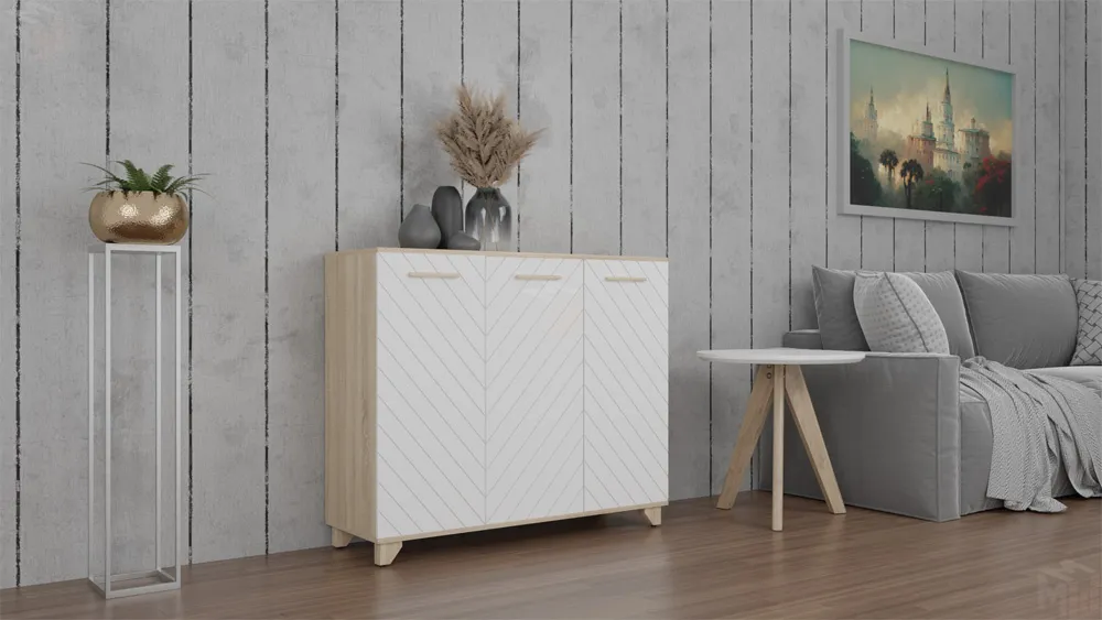 Трехстворчатый комод Стокгольм оборудован шестью закрытыми полками. Подходит для хранения предметов одежды и текстиля. Створки крепятся на петли с доводчиками, что обеспечивает плавность хода при открывании и закрывании. Ручки выполнены из натурального массива дуба. Опоры из массива дерева имеют регулировку по высоте. Разные сочетания цветов корпуса и фасада изделия позволят выбрать подходящую модель для любого интерьера. -