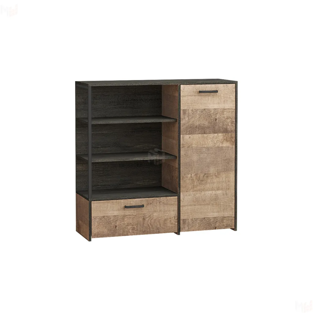 Комод Трувор 13.307.01 будет отличным дополнением интерьера любой комнаты. На открытых полках будут гармонично смотреться интересные и увлекательные книги, семейные фотографии, коллекции интересных предметов, оригинальные сувениры, статуэтки и детские поделки. За глухой дверцей и в выдвижном ящике можно хранить более ценных и важные предметы, а также одежду и белье. Индустриальная мебель Трувор выполнена в стиле лофт.