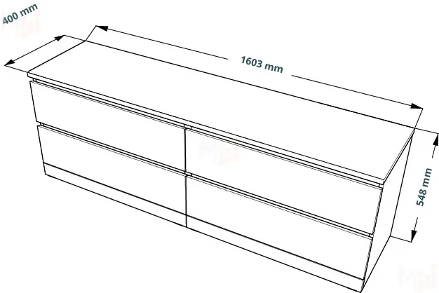 ширина 1603 мм, глубина 400 мм, выcотa 548 мм