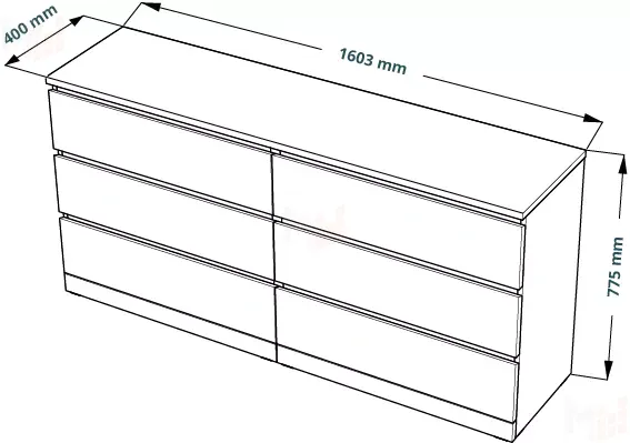 Ширина: 1603 мм, Глубина: 400 мм, Высота: 775 мм