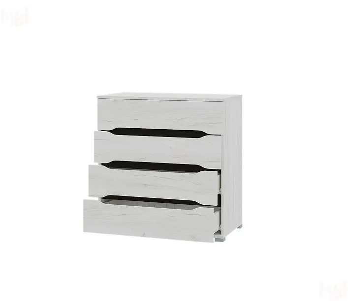 Ящики комода Вега выдвигаются при помощи роликовых направляющих.