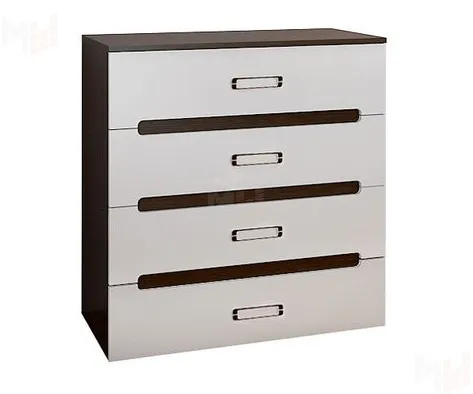 Каркас комода выполнен из ЛДСП венге. Фасады МДФ белый глянец. -