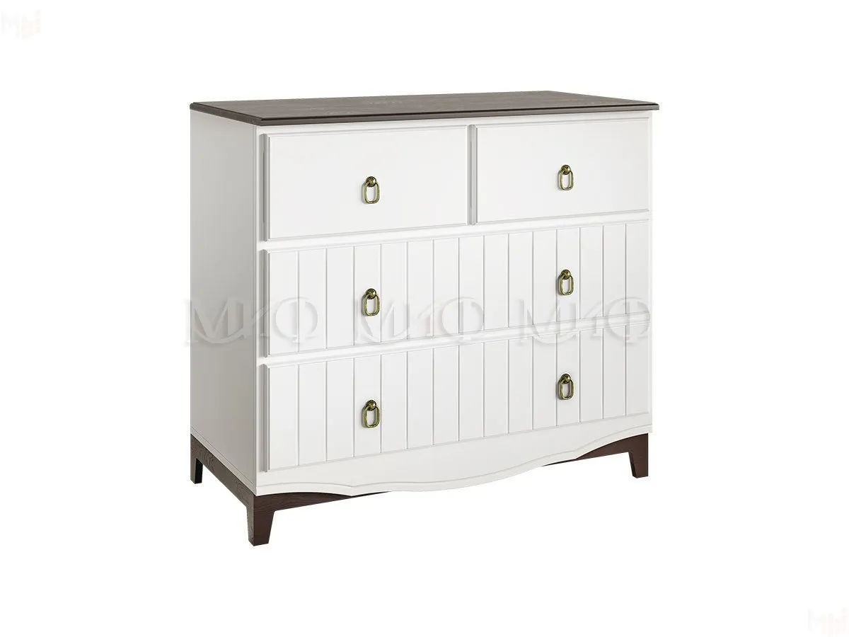 Каркас комода выполнен из ЛДСП белого цвета.