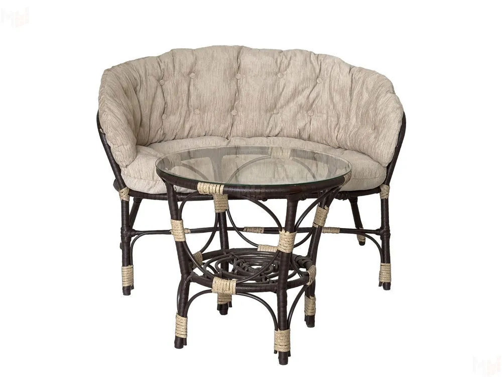 Комплект Багама с диваном и бежевыми ушастыми подушками (полиротанг)