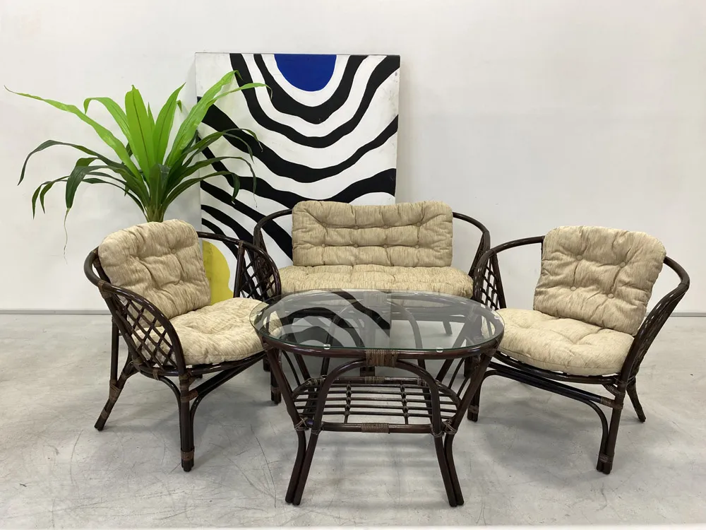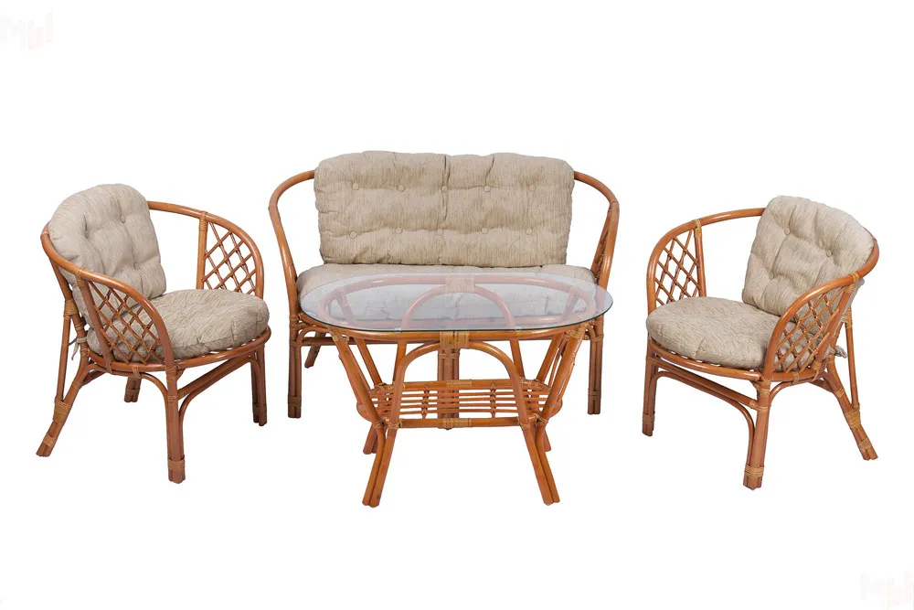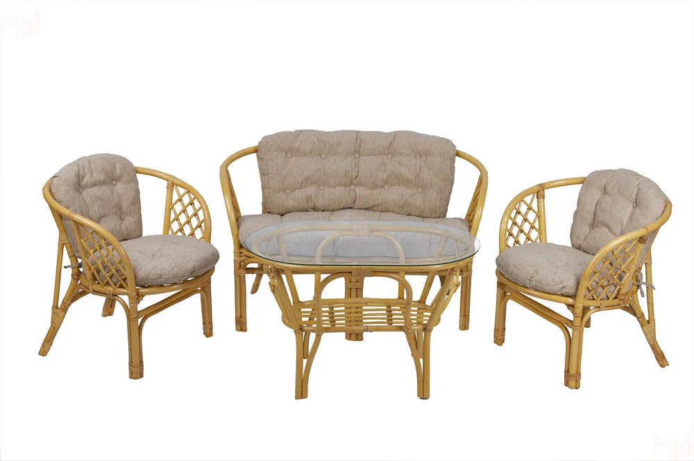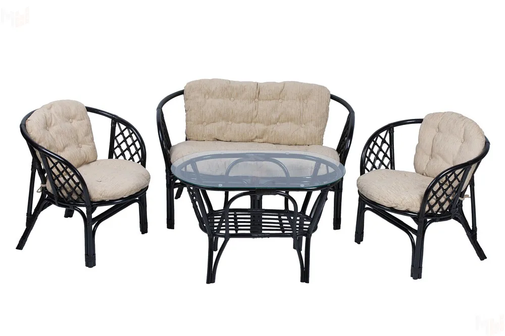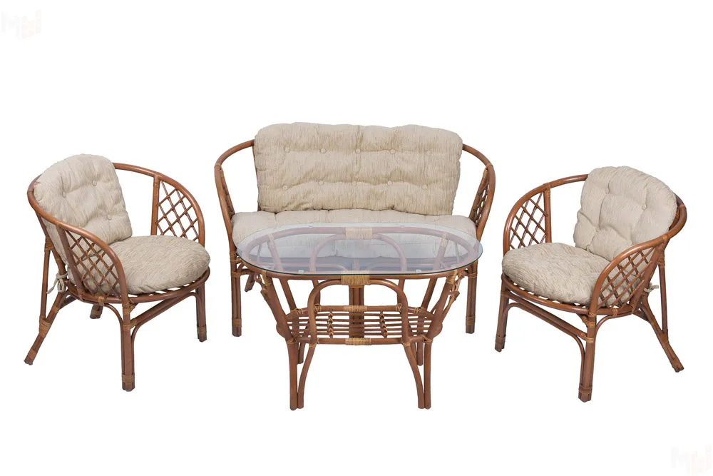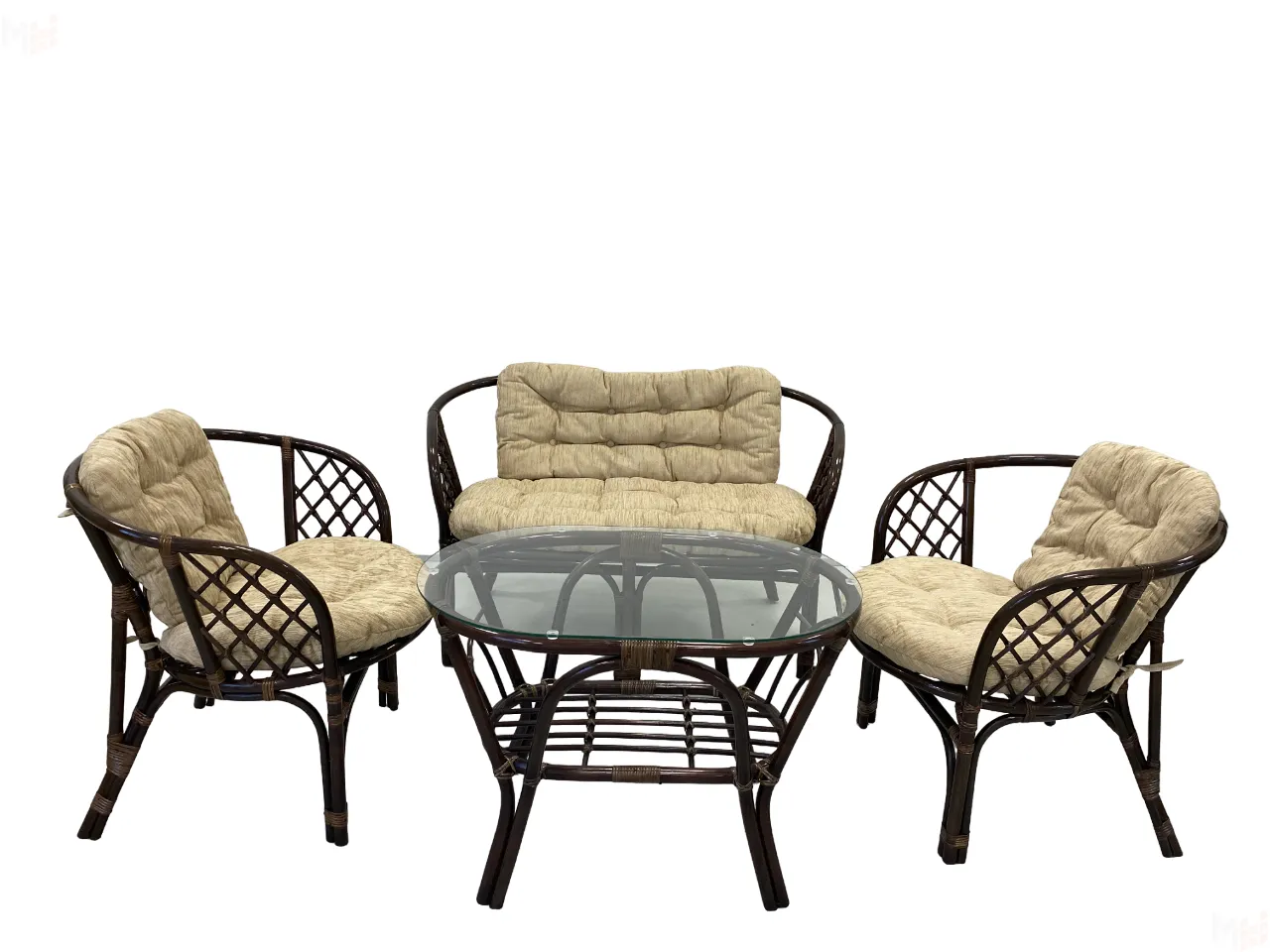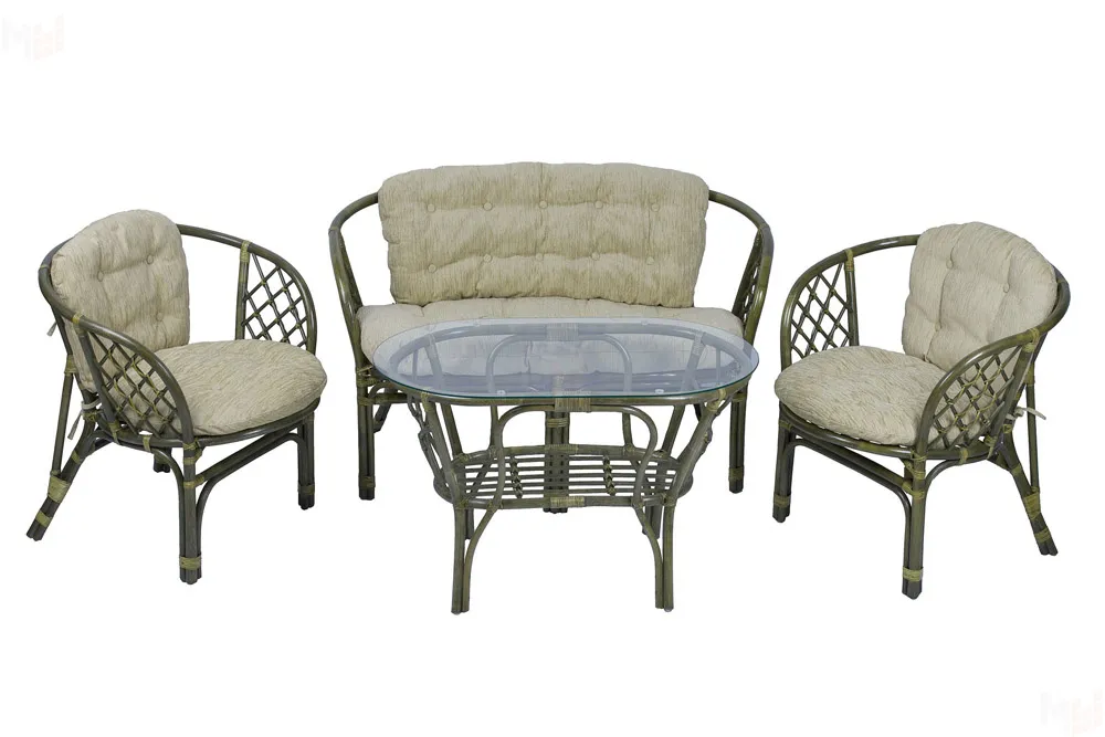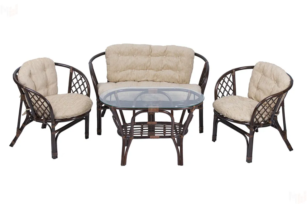 Комплект Багама с диваном с простыми подушками и овальным столом