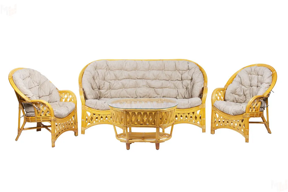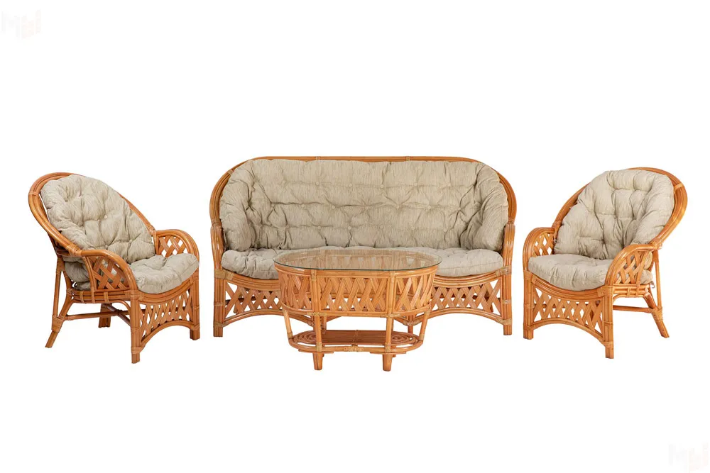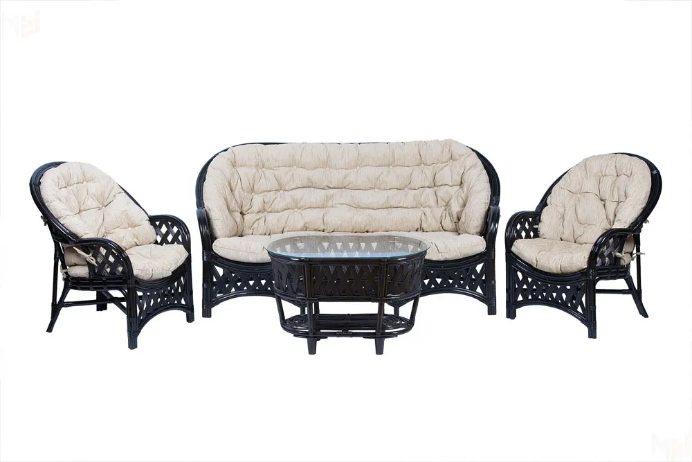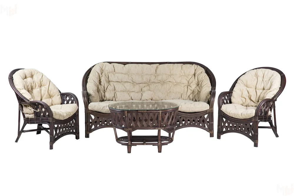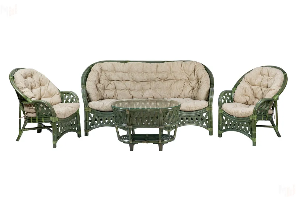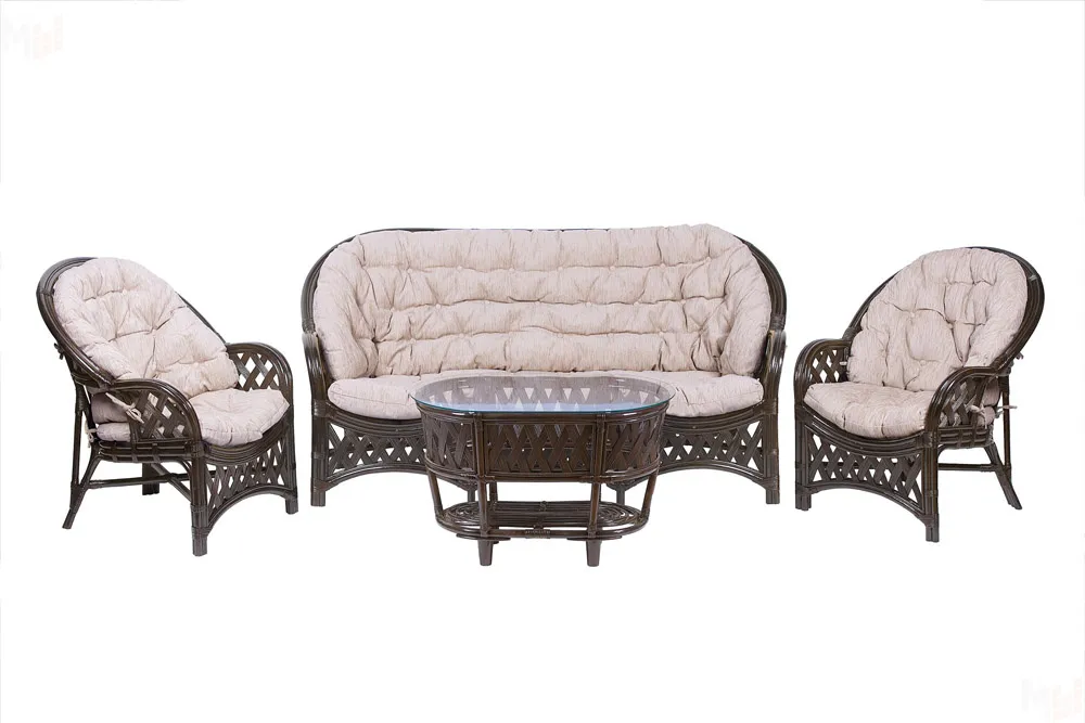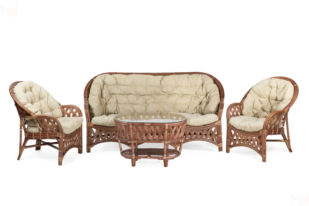 Удобный комплект с 3-х местным диваном и овальным столом (столик при желании можно заменить на круглый).