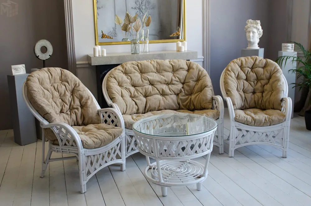 Цвет подушки: бежевый.Материал: натуральный ротанг.