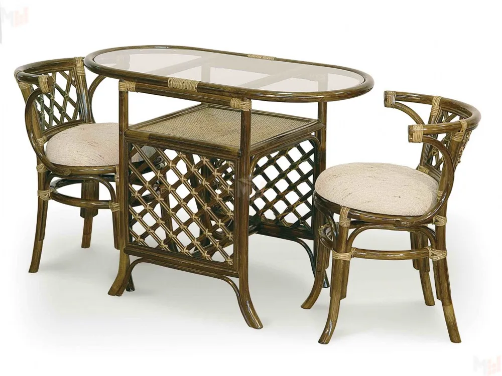 Комплект мебели включает в себя: 2 стула и овальный столик.