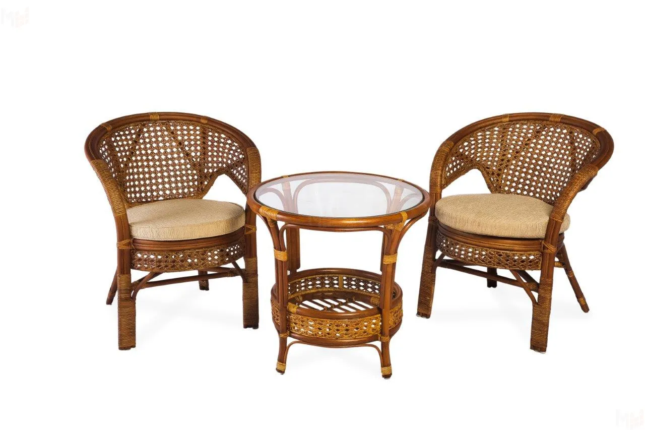Комплект мебели из ротанга "Пеланги дуэт": два кресла и круглый столик 02/15