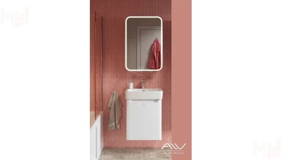 Белый компактный гарнитур для ванной Лана (размер 50 см), выполненный в современном тренде без лишних декоративных деталей, позволит эргономично использовать пространство ванной комнаты. Гарнитур с зеркалом идеально вписывается в любой стиль интерьера.