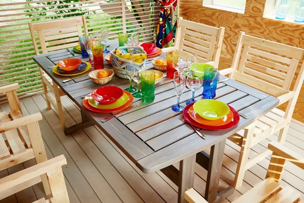 Гарнитур из 4 предметов для семейного отдыха. Комфортно разместит 4 человека. Гарнитур включает стол высотой 75 см со столешницей 120х70 см, 2-местн.софу Стэнхамн и два кресла Стэнхамн. При длине 1,2 м стол вполне удобно разместит 6 человек. Два продольных распора не позволяют столу раскачиваться. Наклон сиденья и спинки кресел и софы дает возможность долгого отдыха без соскальзывания с сиденья. Вы можете дополнить набор креслами Стэнхамн или софами Стэнхамн.