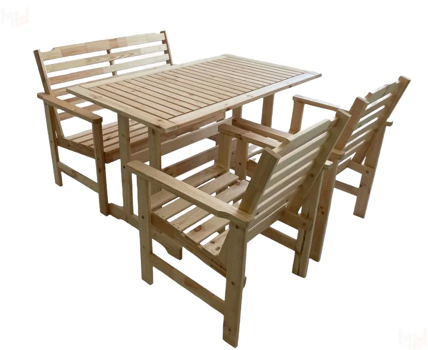 Материал — сосна (массив/срощенный массив), толщина доски 20 мм, шиповано-клееные соединения собраных узлов, оцинкованная фурнитура. Поставка в разобраном виде, упаковано в термоусадочную пленку, подробная инструкция-схема по сборке и инструмент для сборки в комплекте. Пиковая нагрузка 200 кг.