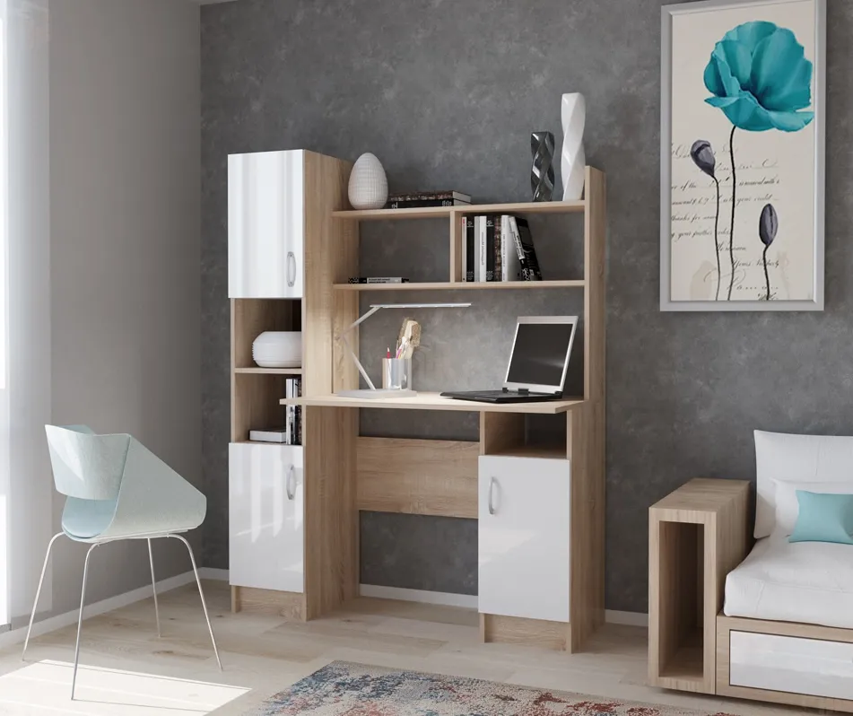 Компьютерный стол ПКС-6 сонома/белый глянец