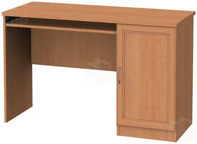 Удобный небольшой компьютерный стол, который можно заказать для небольшого помещения. Стол оборудуется легкой выдвижной подставкой под клавиатуру, а также закрытой тумбой, которая имеет три вместительных отделения.
