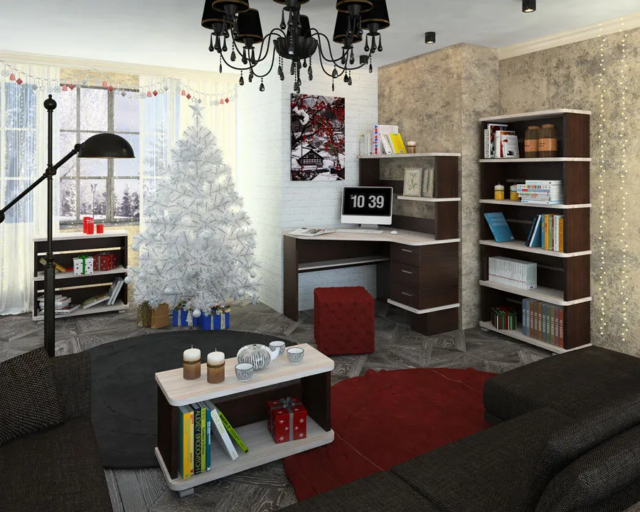 Дизайн стола построен на сочетании горизонтальных линий. -