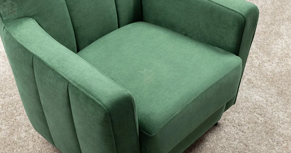 Стежка на внутренней спинке и боковине. Отделочная строчка по сидению. Декоративный кант в тон на подлокотниках и спинке. Изюминку коллекции придают металлические пуговицы на спинке.
