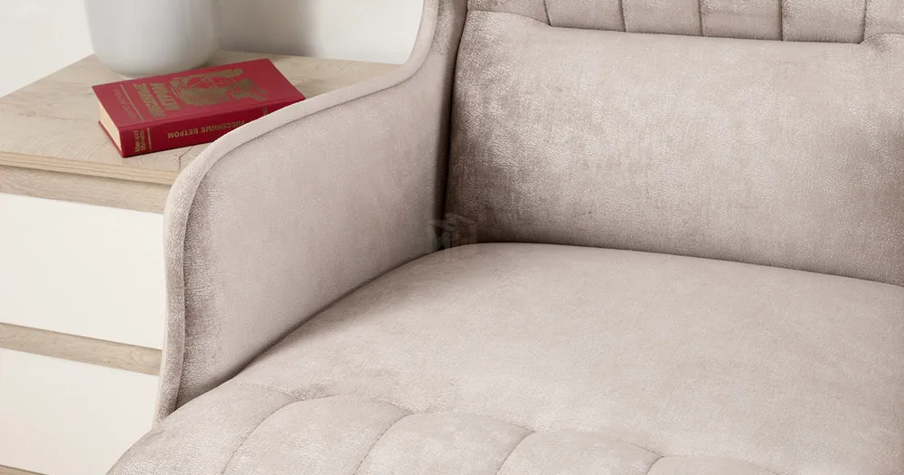 Стежка в верхней части спинки и передней части сиденья. Декоративный кант в тон на подлокотниках и передней части сиденья.