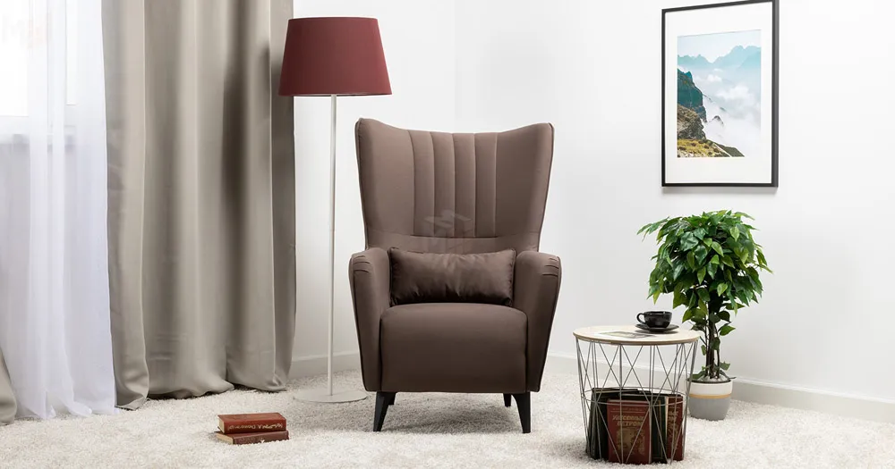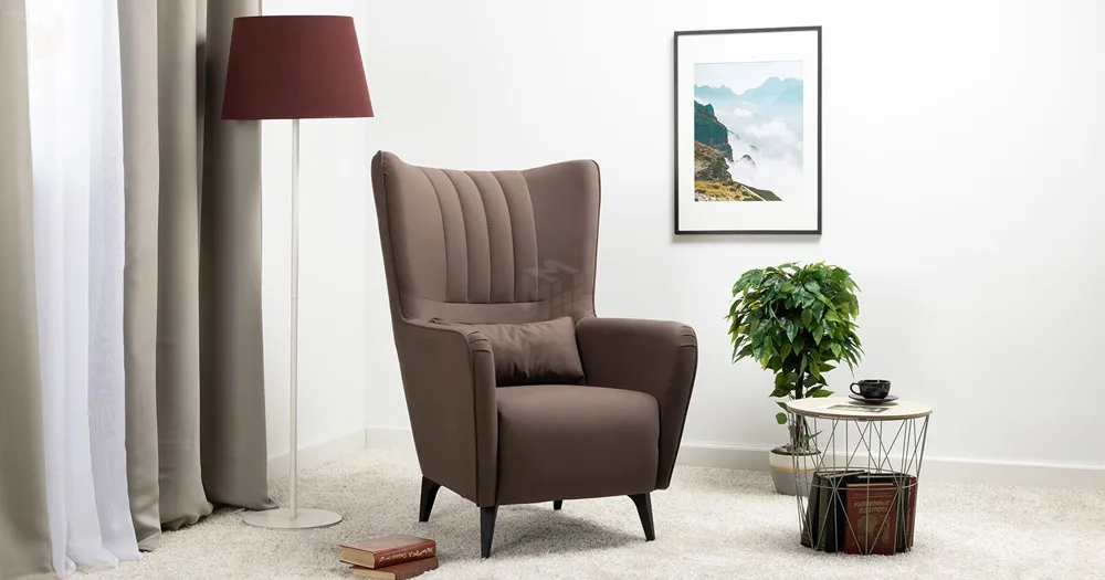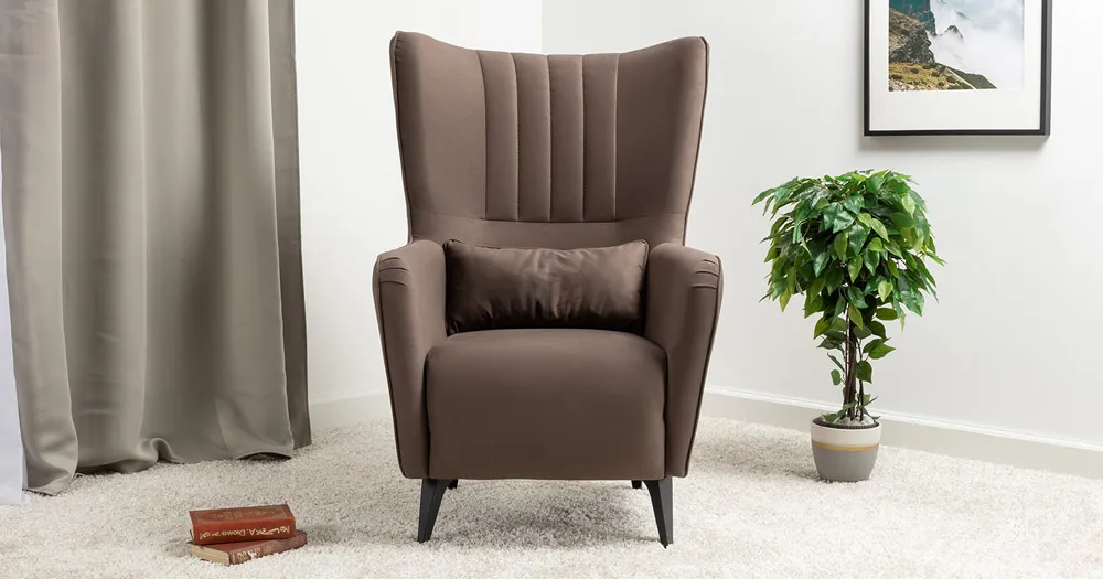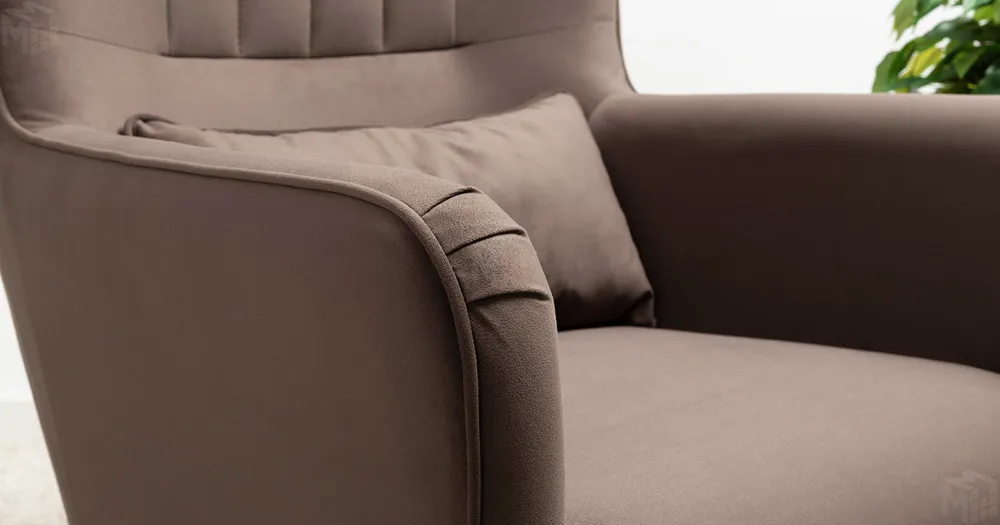 Вертикальная объемная стежка в средней части спинки; кант на спинке, подлокотниках и декоративной подушке
