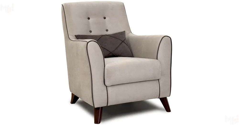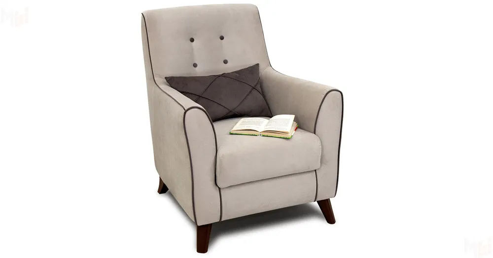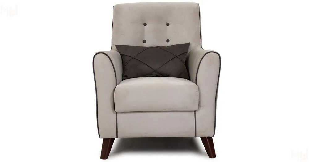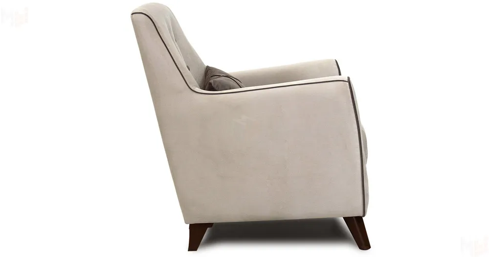 Декоративный кант на кресле, защипы на декоративной подушке, пуговицы на спинке.