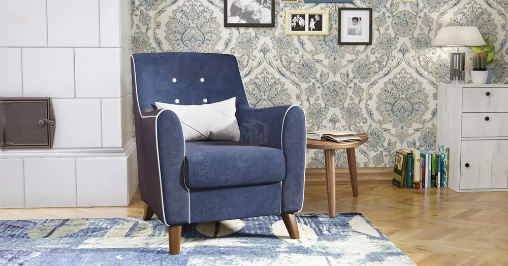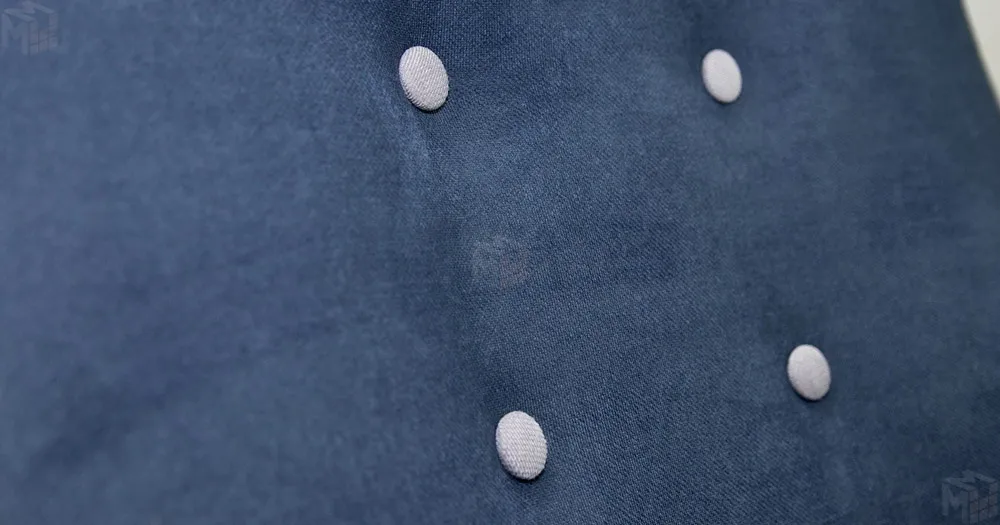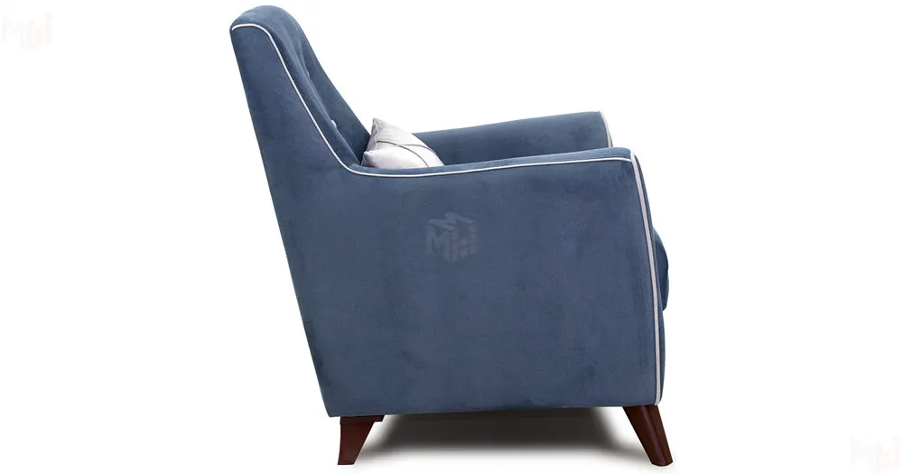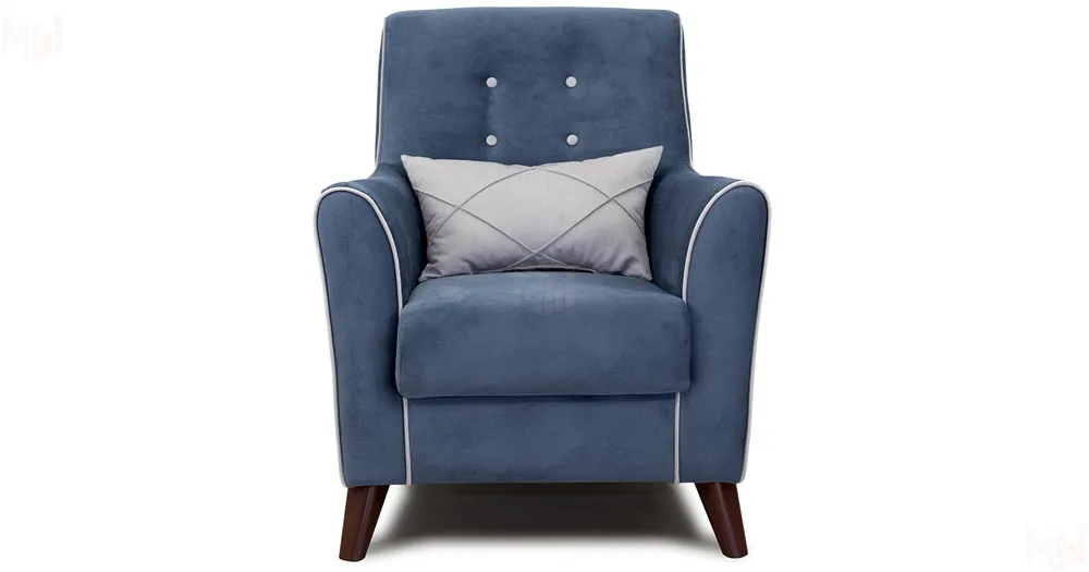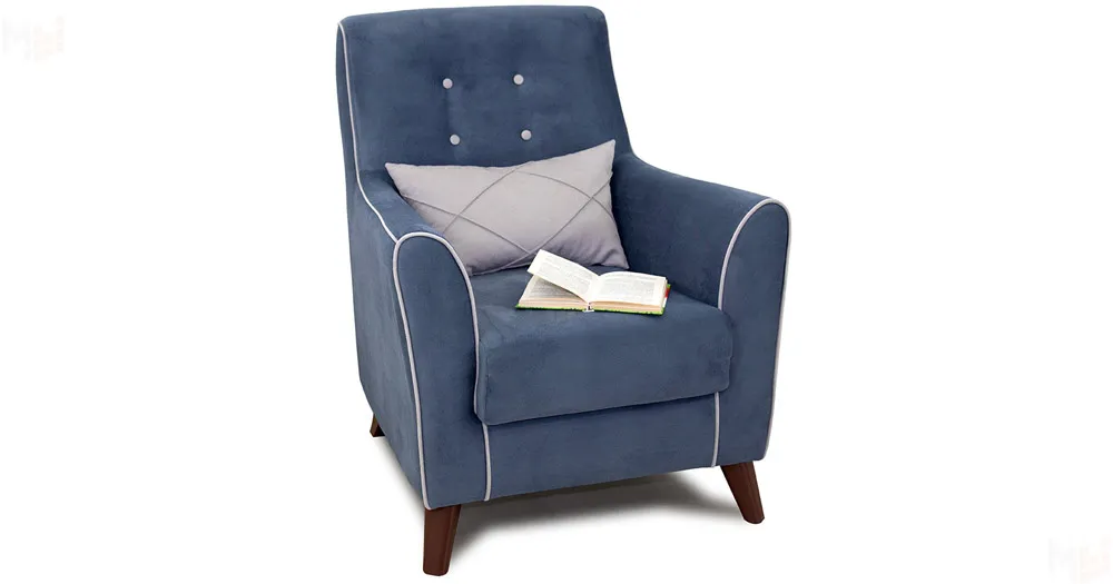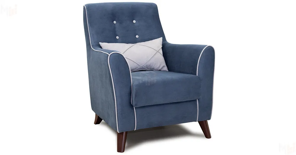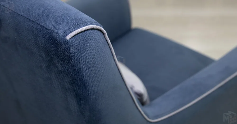 Декоративный кант на кресле, защипы на декоративной подушке, пуговицы на спинке.