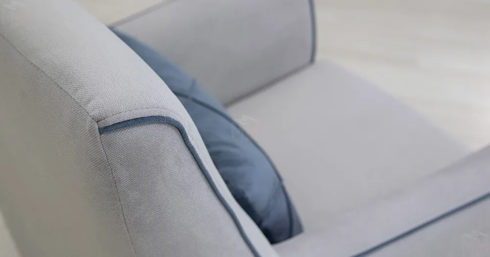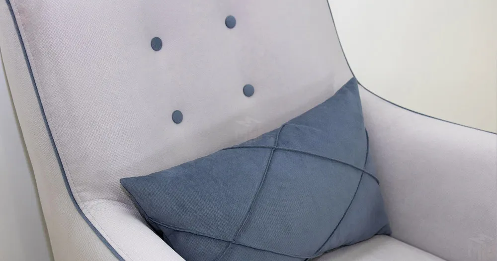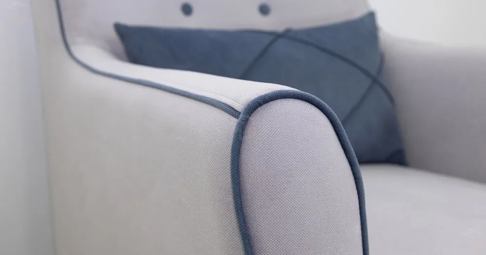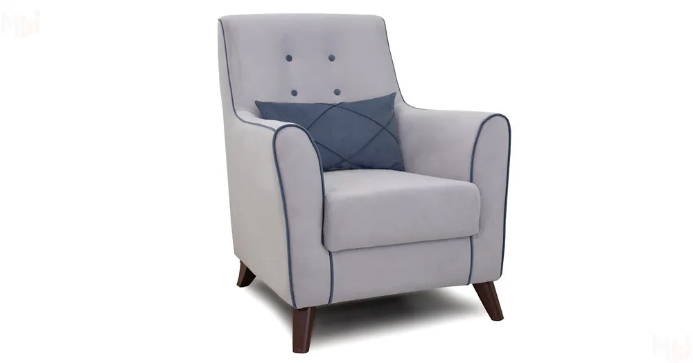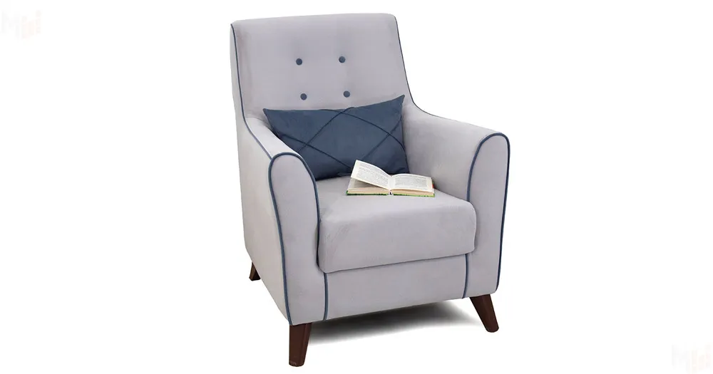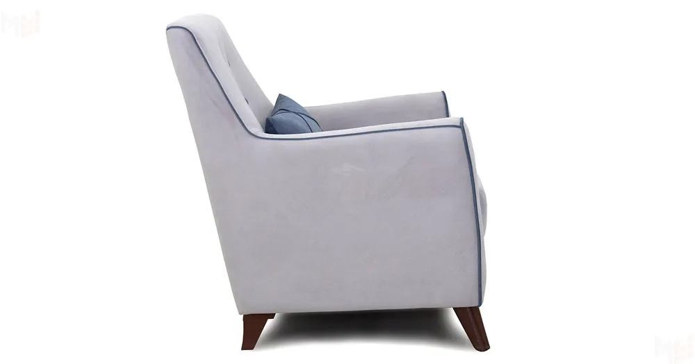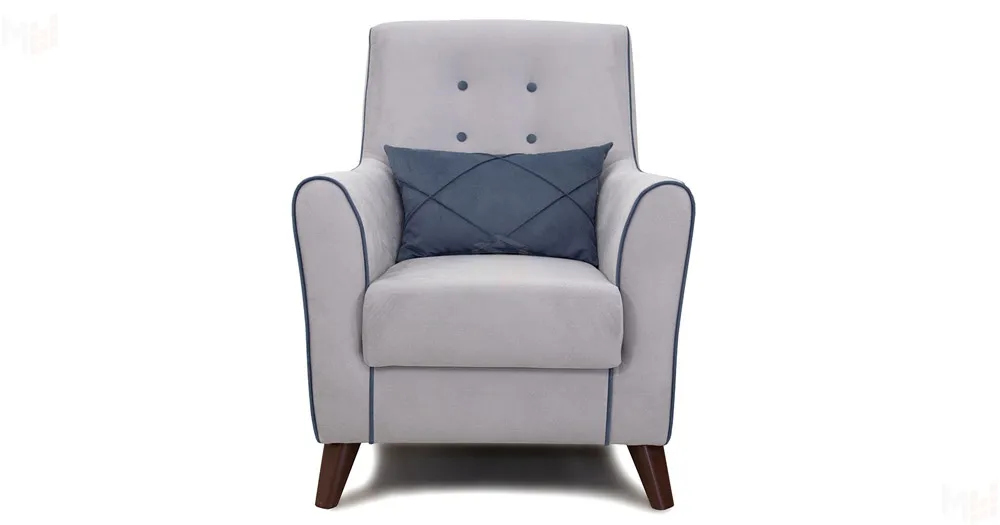 Декоративный кант на кресле, защипы на декоративной подушке, пуговицы на спинке.