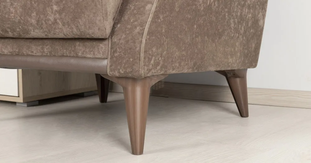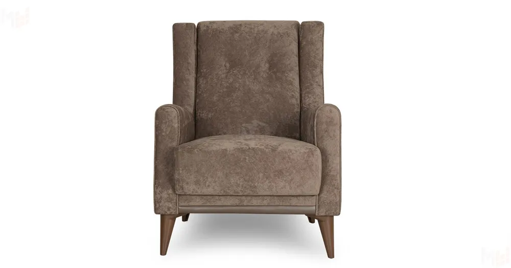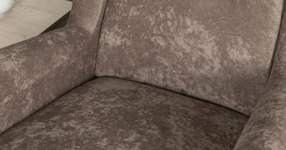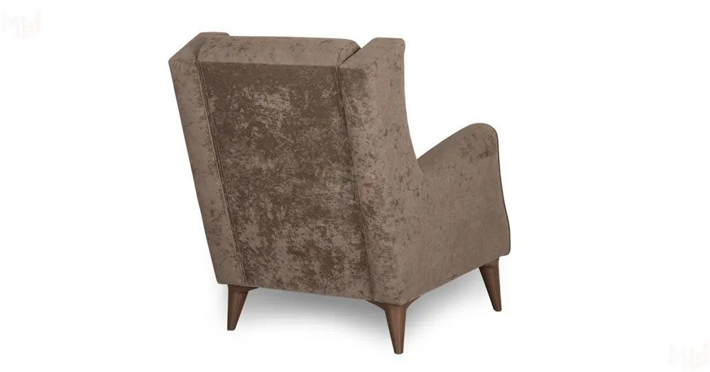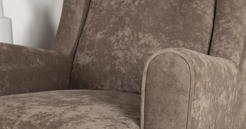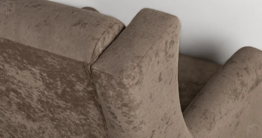 Декоративный кант из основной ткани по переднему торцу подлокотника; Утяжка спинки на 2 декоративные пуговицы из основного материала; Декоративный элемент царги из материала-компаньона.