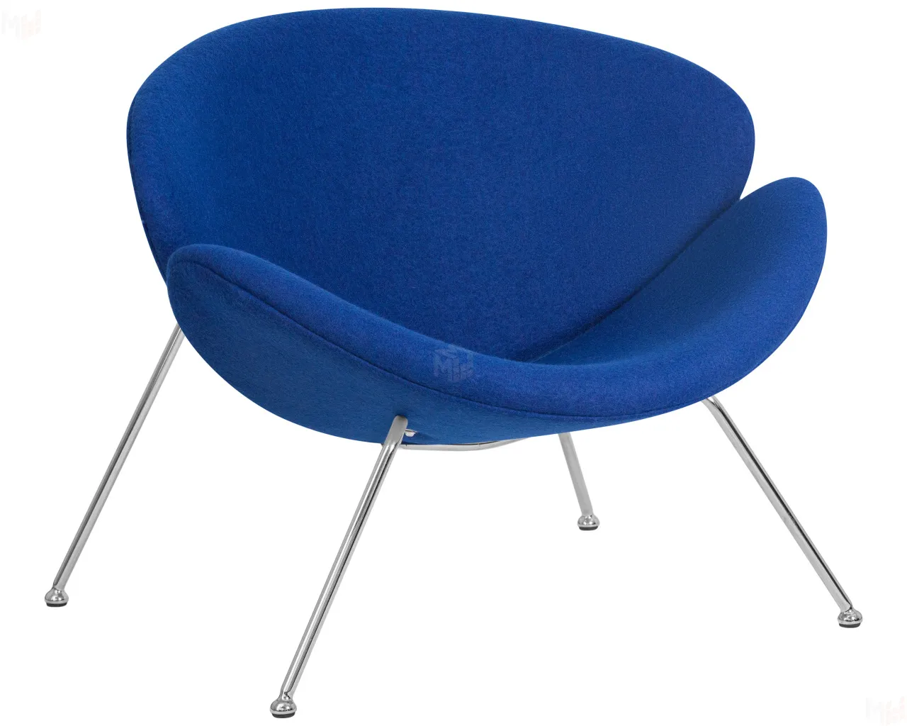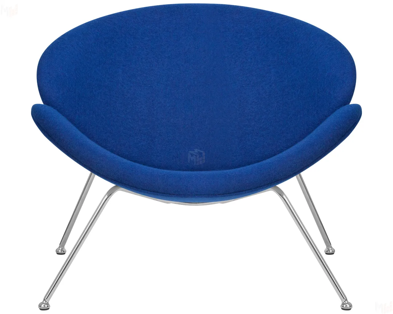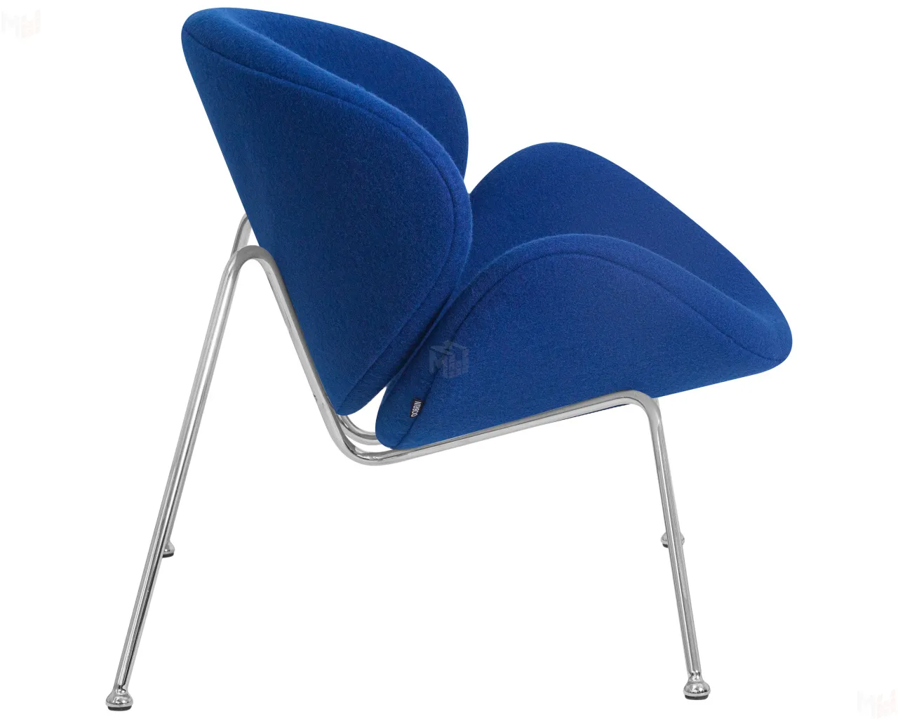 Металлический каркас, обивка - синяя ткань. Лаунж кресло.