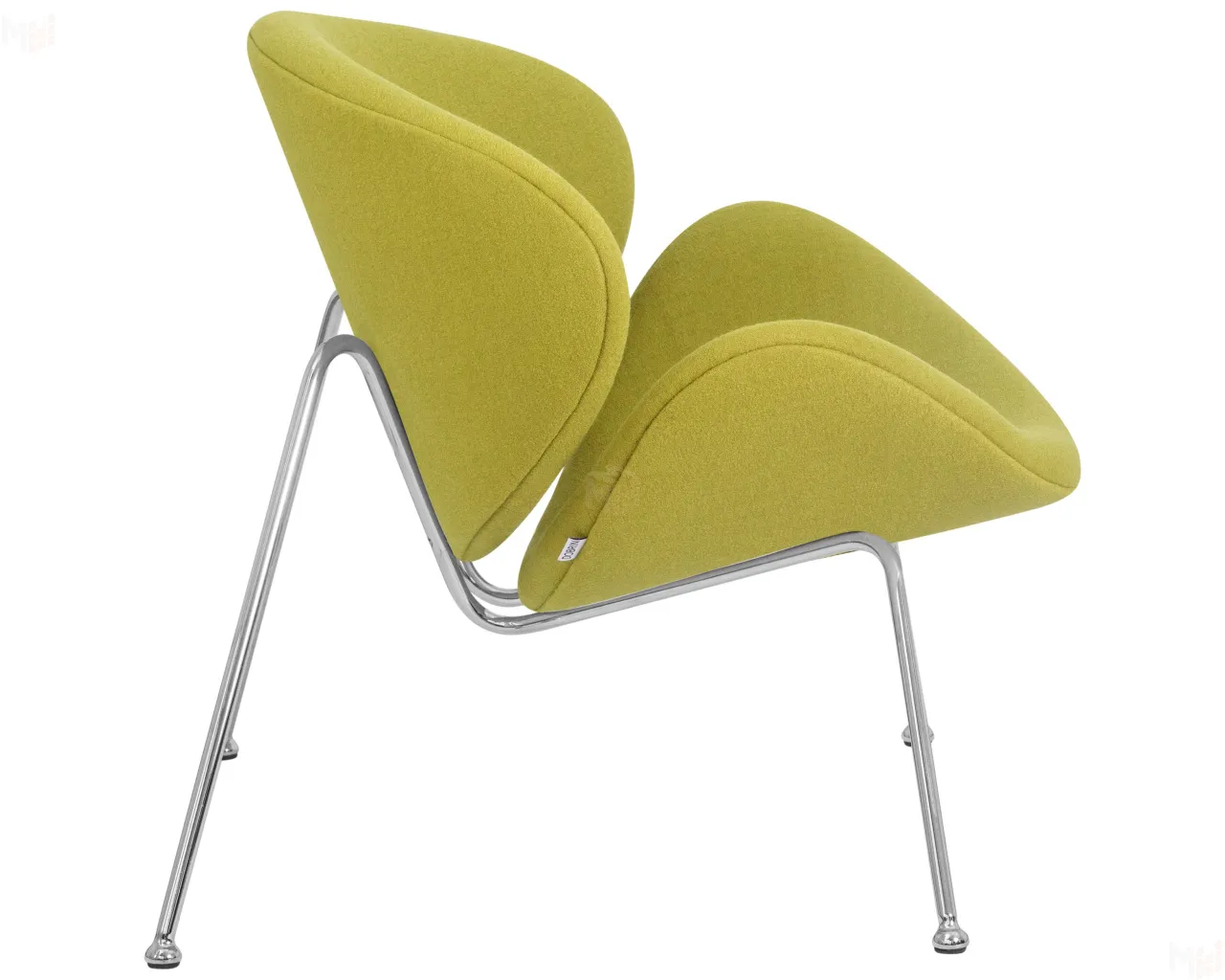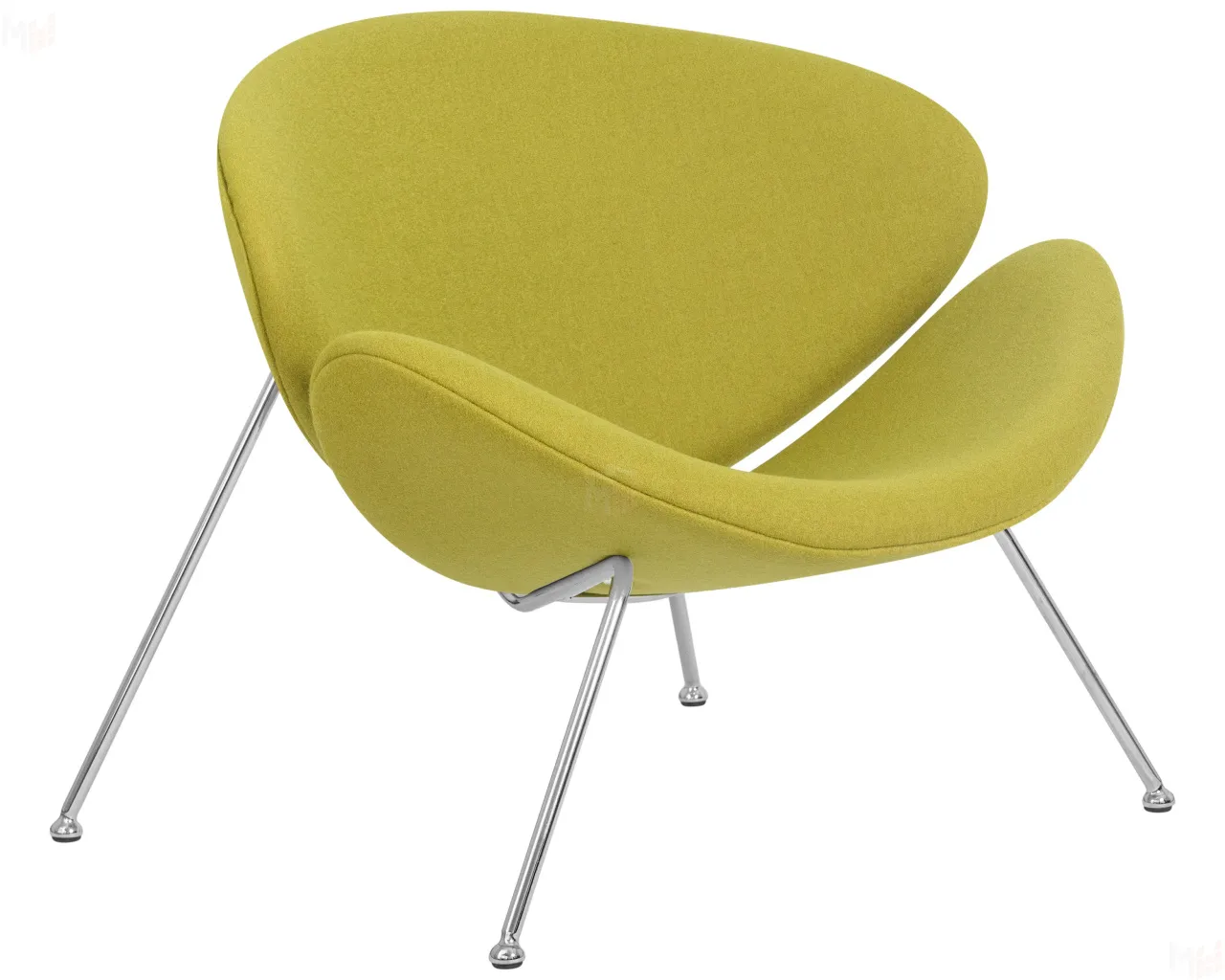 Металлический каркас, обивка - светло-зеленая ткань. Лаунж кресло.