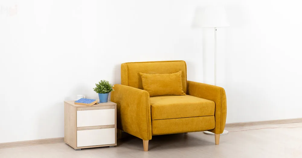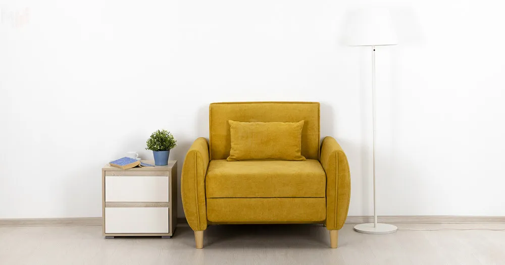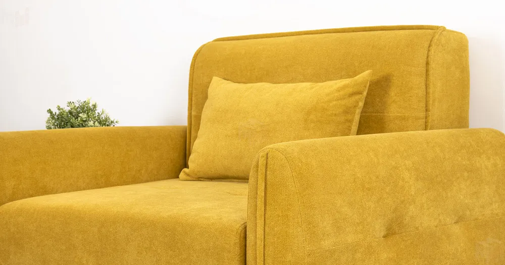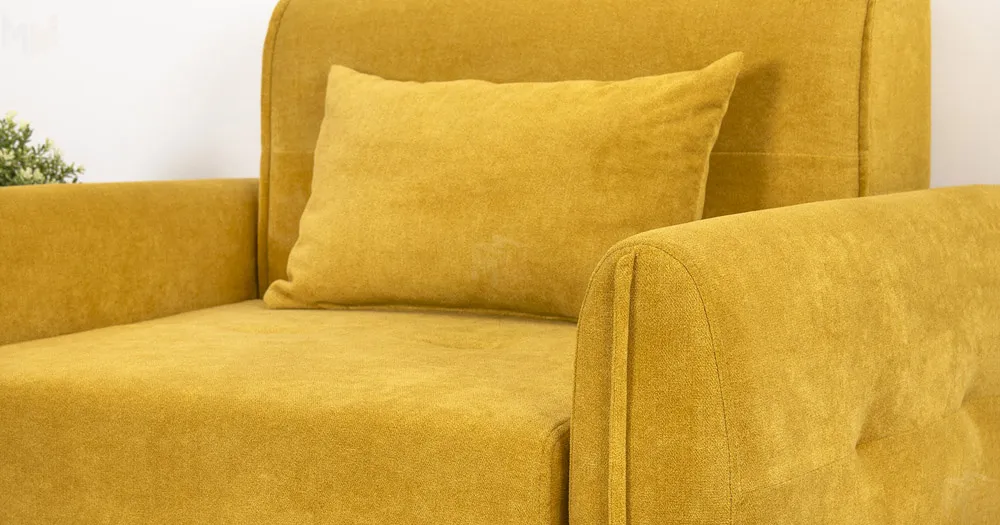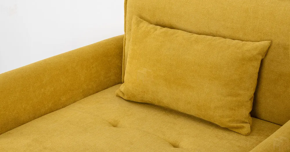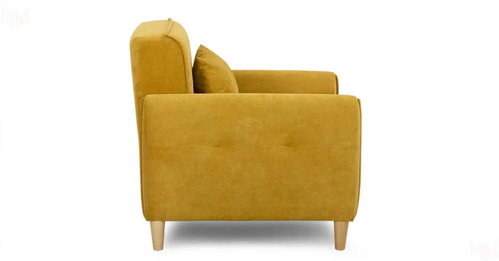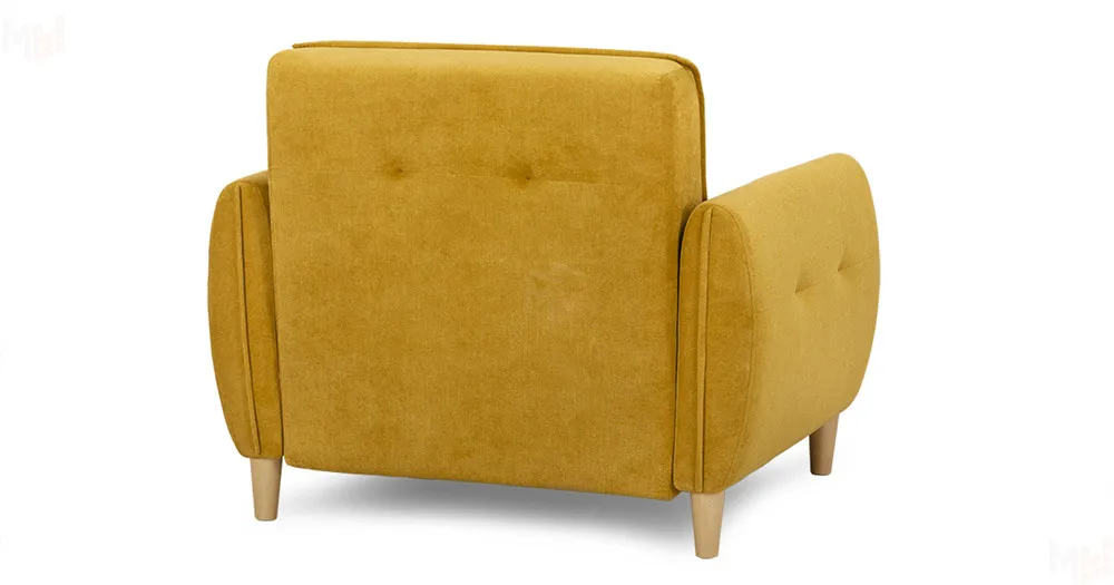 Мягкая спинка с имитацией приспинных подушек. Утяжки на передней и задней стороне спинки, на сиденье и подлокотниках.